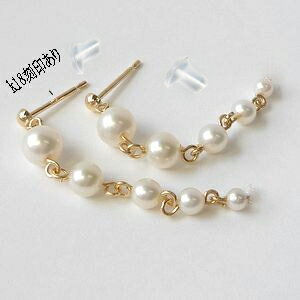 メール便で【送料無料】縦長のラインがお顔周りをすっきりと見せてくれる美しいロングピアス大小光沢感のあるパールビーズを仕様 グラデーションタイプロングピアス存在感があり、お洒落のアクセントにぴったりです。シンプルかつ美しい仕上がりで、身のこなしとともにキラキラとした輝きを演出します 天然石の為個体差あり18金イエローゴールド/YG18Kポストタイプ/針/K18刻印あり/国内産/0.7mmx10mm/福耳/シリコンキャッチ付きサイズ:長さ約43mm 約3mm/4mm/5mm/6mm/8mmフェイクパール/丸/ラウンド揺れる長め黒パーツビーズボール福袋成人式プレゼント