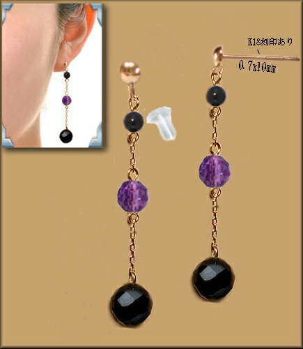 メール便【送料無料】耳元からすっとこぼれ落ちる雫のような、美しいロングピアス大小漆黒なブラックオニキスとパープルアメジストをあしらった揺れ感のあるスリーストーンロングピアス身のこなしとともに揺れて、しっかりと存在感をアピールしますチャーミングなアクセントをプラスするアイテムです18金イエローゴールド/YG18Kポストタイプ/針/(K18刻印あり)/国内産/0.7mmx10mm/福耳可/シリコンキャッチ付き約8mmブラックオニキス/黒/ダイヤモントカット加工あり/パワーストーン約6mmパープルアメジスト/紫水晶/ダイヤモントカット加工あり/パワーストーン/2月誕生石チェーンが合金でゴールドトーンです約4mmブラックオニキス/黒/加工あり/丸/ラウンド/パワーストーンサイズ:長さ約55mm天然石の為個体差あり【大切な人への贈り物として】 お誕生日プレゼントや結婚記念日の贈り物としてはもちろん、クリスマスギフト、ホワイトデーのお返し、母の日、出産祝いなど、女性へのギフトに最適です。
