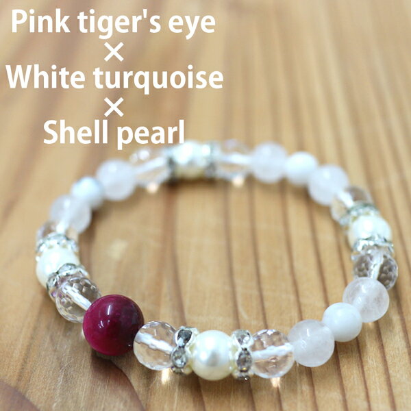 デザインにもこだわった、パワーストーンのブレスレットが登場。自分用の普段遣いにはもちろん、プレゼントやギフトにもオススメです。■サイズ(cm)→フリーサイズ(約16cmから伸縮)■重さ(g)→18■素材→合金、ゴム、(6mm)ホワイトターコイズ、(8mm)シェルパール、水晶、シンセティックムーンストーン、(10mm)ピンクタイガーアイ■付属品→なし■注意事項内包物や若干の傷、へこみなどが存在しますが、これはガラスや人工石などとは違い天然石特有のもので不良とはなりません。予めご了承ください。着用部を無理に伸縮させないよう、ご注意下さい。ゴムのちぎれなど、特に製品保証はございません。長時間水にさらすと石の色が変色してしまったり、ゴムや金具が劣化しやすくなってしまいます。水濡れや汗はできるだけお控え下さい。■サイズ・重量について数値はおおよそです。商品や採寸方法により多少の誤差はございますので、参考値としてご参照下さい。■商品の状態について海外生産・海外輸入品のため、生産入荷時期によりカラーや形状など、表示の画像からデザイン変更がある場合がございます。また製造特性上、縫製や仕上げなど加工に荒さが目立つものもあり、同商品であっても個体差がございます。新品であっても若干の小キズや汚れはご了承下さい。■送料について [郵便受け配達送料]全国一律税込330円[宅配便送料]全国一律税込880円(北海道・沖縄・その他一部離島のみ税込1760円)※北海道・沖縄・その他一部離島で宅配便送料無料の場合のみ、1760円の半額「880円」が加算されます。検索ワード [ピンクタイガーアイ シェルパール パワーストーン 天然石 アクセサリー 腕輪 バングル 数珠 ブレスレット アミュレット bracelet レディース 女性用 メンズ ユニセックス 開運 風水 SS031]検索ワード [ピンクタイガーアイ シェルパール パワーストーン 天然石 アクセサリー 腕輪 バングル 数珠 ブレスレット アミュレット bracelet レディース 女性用 メンズ ユニセックス 開運 風水 SS031]
