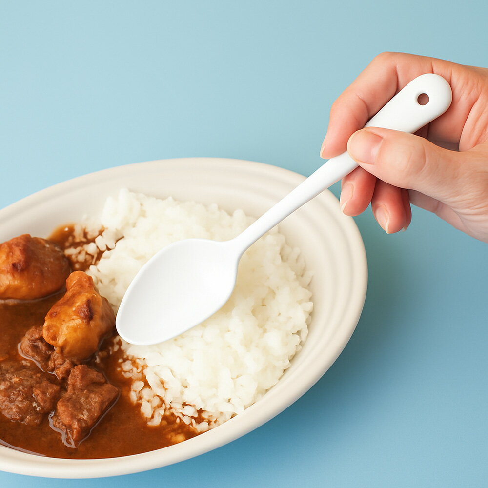 幅を広く取り、手にフィットするよう設計された柄によって、ごろっとしたカレーの人参やじゃがいもなども器の上で切り易くなっています。しなやかなカーブを描き適度にしなるスプーンの先端によってルウのようなソースも最後まですくいやすくなっております。ページ下部に画像の説明がございます。一部別売りの商品もございますので、説明文ご確認のうえご注文ください。>画像の説明はこちら<仕様・サイズ■色:(ア)ホワイト (イ)ブラック (ウ)グレー (エ)グリーングレー (オ)ピンクグレー■サイズ:長さ21cm スプーン幅3.9cm 重量約12g■材質:飽和ポリエステル(トライタン)+GF(ガラスファイバー)■日本製■耐熱温度:100℃、耐冷温度:-20℃【送料マーク:A】 この商品の販売価格には配送料880円(税込)が含まれています。 画像の説明(エ)グリーングレー (ウ)グレー(イ)ブラック(オ)ピンクグレー(ア)ホワイト手にフィットするハンドルデザイン。ゴロっとしたカレーの人参やジャガイモも皿の上で切りやすく持ちやすい。非常に薄い0.5mmの縁
