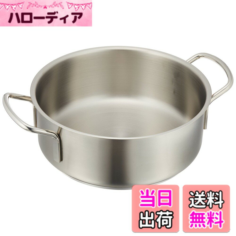 商品情報商品の説明 ●MURANO INDUCTION(ムラノ インダクション)シリーズ[IH対応]プロユースの電磁調理器対応鍋。作業効率と使いやすさを極めたカタチ・サンドイッチ式三層底 熱伝導率の高いアルミニウムを保温性の高いステンレスでサンドイッチ。 ムラ無く均一に、効率よく加熱するのでスピーディーな沸き上がりを可能にする。・握りやすい空洞ハンドル 片手鍋は握りやすく疲れにくいデザインのハンドルを採用。 忙しい厨房内でもしっかりとホールドできるので安心。・ハンドルにビスを不使用 ハンドルと鍋本体の接合にビスを使用していない。 洗いやすく衛生的で、ビスの緩みなどによる水モレはおきない。 ※Murano(ムラノ)インダクションシリーズのみ主な仕様 本体サイズ:外径x深さ(mm)344x160br本体重量:3140gbr素材・材質:18-8ステンレス原産国:ベトナム容量(L)12.9br板厚(mm)305br底径(mm)305