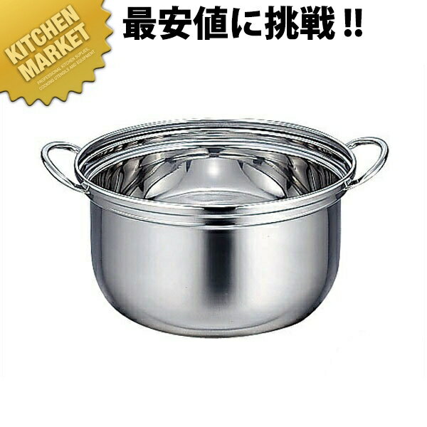 【業務用厨房機器のキッチンマーケット】IHマエストロ 3層鋼クラッド外輪鍋 33cm(8.8L) 本体規格 (容量) : [33cm(8.8L)]内径 深さ t=板厚 : φ330×H110mm t=2.0mm材質 : 3層鋼クラッド材IHマエストロシリーズ 3層鋼クラッド材使用業界初!高機能アルミクラッド鋼鍋のフルサイズ、フルラインアップ化●均一加熱に最適で焦げ付きにくい。軽量さも併せ持つオペレーション厨房に最適なシリーズ。●熱伝導が良く均一に伝わるため焦げ付きにくい特長を持ちます。カレー・シチュー等の煮込み料理でも火力を適量に抑えた均一加熱により焦げ付きにくく非常においしく仕上がります。アルミクラッド鋼は水を沸騰させると細かい気泡が鍋全体から万遍なく沸き上がるのが見えて熱が均一に伝わっている事がよく分かります。●内ー18-8ステンレス(クロム18%、ニッケル8%)ステンレスの中でも特に耐蝕性に優れた鋼種。料理に直接触れる内面に非常に適しています。●中ーアルミニウム優れた熱伝導性で熱が均一にムラなく鍋全体に伝わるため、料理を焦げ付きにくく美味しく仕上げます。●外ークロムステンレス耐蝕性に優れたIH対応ステンレス。【送料無料】IHマエストロ 3層鋼クラッド 外輪鍋 33cm (8.8L) 本体 外輪鍋 業務用外輪鍋 両手鍋 外輪鍋 IH対応 電磁調理器対応 アルミ 業務用[ASC:R=☆/R=045/P=0041600][ASC:R=☆/R=045/P=0047850]