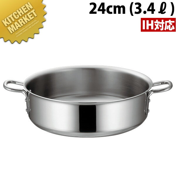 【業務用厨房機器のキッチンマーケット】IHマエストロ 3層鋼クラッド外輪鍋 24cm(3.4L) 本体規格 (容量) : [24cm(3.4L)]内径 深さ t=板厚 : φ240×H80mm t=2.0mm材質 : 3層鋼クラッド材IHマエストロシリーズ 3層鋼クラッド材使用業界初!高機能アルミクラッド鋼鍋のフルサイズ、フルラインアップ化●均一加熱に最適で焦げ付きにくい。軽量さも併せ持つオペレーション厨房に最適なシリーズ。●熱伝導が良く均一に伝わるため焦げ付きにくい特長を持ちます。カレー・シチュー等の煮込み料理でも火力を適量に抑えた均一加熱により焦げ付きにくく非常においしく仕上がります。アルミクラッド鋼は水を沸騰させると細かい気泡が鍋全体から万遍なく沸き上がるのが見えて熱が均一に伝わっている事がよく分かります。●内ー18-8ステンレス(クロム18%、ニッケル8%)ステンレスの中でも特に耐蝕性に優れた鋼種。料理に直接触れる内面に非常に適しています。●中ーアルミニウム優れた熱伝導性で熱が均一にムラなく鍋全体に伝わるため、料理を焦げ付きにくく美味しく仕上げます。●外ークロムステンレス耐蝕性に優れたIH対応ステンレス。[ASC:R=☆/R=045/P=0022600][ASC:R=☆/R=045/P=0026000]