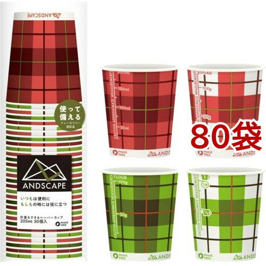 ・広告文責(株式会社ビッグフィールド ・072-997-4317) ※ご注文手配後の変更キャンセルはお受けできません※仕入れ先からの直送品の為、お客様ご都合の返品・交換を賜ことが出来ません。誠に勝手ではございますが、何卒、ご理解ご了承のほどお願い申し上げます。ホーム&キッチン>食器・カトラリー>カップ・グラス>紙コップ・簡易コップ>アンドスケープ ペーパーカップ チェック 205ml C2030CAS (30個入*80袋セット)【アンドスケープ ペーパーカップ チェック 205ml C2030CASの商品詳細】●自然災害の多い日本ならではの災害時の不安を、「フェーズフリー」の推奨と共に製品化したペーパーカップです。●いつも(日常時)はオシャレな紙コップですが、もしも(非常時)の際には印刷された目安線で、お水・お米・計量カップ・砂糖・小麦粉のおおよその計量をすることが出来ます。 ●デザインに安心をプラスしました。 ※メーカーの都合により、パッケージ・仕様等は予告なく変更になる場合がございます。【規格概要】サイズ:口径7.26*高さ8.05cm 容量:約205mlバージンパルプ100%、内面ポリエチレンラミネート加工【注意事項】★注意・食品以外には使用しないでください。・アルコール飲料のご使用はもれる場合がございます。・冷たいお飲み物をご使用の際に、結露によりコップが柔らかくなる場合がございますが、もれではございません。・電子レンジ・オーブン・オーブントースターでは使用しないでください。・数回にわたって使用しないでください。・火気のそばに近づけないでください。・パック内で各柄アソート(交互)になっていますが、各柄が均等な数ではありません。・インク臭が残っている場合があります。開封したまま風通しの良いところに予感して、インク臭を飛ばしてからお使いください。・ゴミとして処理する場合は地域の指定に従ってください。【原産国】日本【ブランド】サンナップ【発売元、製造元、輸入元又は販売元】サンナップ※説明文は単品の内容です。リニューアルに伴い、パッケージ・内容等予告なく変更する場合がございます。予めご了承ください。・単品JAN:4901627045923サンナップ東京都台東区浅草橋3-8-503-3862-8965[食器・カトラリー/ブランド:サンナップ/]