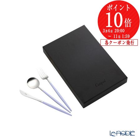 商品詳細ブランドクチポール(ポルトガル)シリーズゴア バイオレット/シルバーアイテムカトラリーセットサイズスプーン長さ21×横幅4.7cm ナイフ長さ22.5×横幅1.6cm フォーク長さ21.5×横幅2.7cmブランドボックスが付属「セット内容」・テーブルスプーン 21cm ×1・テーブルナイフ 22cm ×1・テーブルフォーク 22cm ×1毎日の食卓にも特別な日にも。多様な器ともっと「合わせやすく」「馴染む」GOAを。そんな思いから「GOA バイオレット」は生まれました。薄いパープルの高貴な色合いはテーブルに1本セッティングされているだけですみれの可憐な花が咲き誇るお花畑のようです。淡くて優しい日本の伝統色 藤色を連想させ和食器とのコーディネートも楽しめます。目を惹くエレガントな配色とゴアのスタイリッシュさが新たな魅力です。クールなラベンダーカラーのハンドルと落ち着いた輝きを放つマットシルバーのコンビは甘さ控えめの可愛らしさです。「GOA(ゴア)」シリーズは、極細の柄のラインと丸く繊細なデザインとの絶妙なバランスがエレガントさを引き立てています。手に取ったときの軽さ、そして細さには誰もが驚いてしまいます。北欧などの洋食器だけではなく繊細な和食器とも相性が良い合わせる食器を選ばないGOAは、オリジナリティーに溢れるラインと手作業ならではの独特なカッティングが施されそのデザイン性だけでなく使い心地にもこだわって作られています。柄の部分は、木製のような質感が施された合成樹脂製で手にした時にふとしたあたたかみが感じられます。木製に比べると乾きが早く、お手入れが楽ちんなところも嬉しいポイントです。おしゃれな人たち、グルメな人たちのSNSでよく見かける CUTIPOL クチポールのカトラリー。北欧食器から和食器、ガラスの器まで、どんなテイストのデザインとも馴染みやすいので朝昼晩の食卓に活躍してくれること間違いなしです。おうち時間が楽しくなるアイテムです。【ブランドボックス付き】各種プレゼント・ギフトなどにもピッタリな、「Cutipol」のロゴが入ったブランドボックスに入れてお届けいたします。女性・男性にかかわらず、日頃お世話になっている方、大切な方へ特別な記念日に心を込めた上品な贈り物、お祝いのギフトやプレゼントとしてだけでなく頑張った自分へのご褒美としても最適です。【ブランドについて】伝統的な技術を継承しつつも革新的な感覚を併せもつ、ポルトガルを代表するカトラリーブランド、1920年代創業のCutipol(クチポール)。オリジナリティに溢れた独創的なデザインはオートメーションで作ることができないフォルムも多く、ポルトガルの熟練した職人さん達により一本一本丁寧に手づくりされています。また日本向けには、小さなサイズの製品を作るなど、それぞれの地域にあわせデザインしていることもクチポールの特徴です。スタイリッシュな見た目からは想像がつかない驚きの使い心地のよさと人間工学に基づいた完成度の高いデザインのカトラリーで、華やかでセンスのあるテーブルを演出します。クチポールが使用しているステンレスは、一般的なものよりもニッケルの含有量が多い「18-10」と呼ばれるものです。これは、鉄に18%のクロムと10%のニッケルを含んだステンレスです。耐蝕性(腐敗に強い)と耐久性にすぐれ、さびにくい材質です。木製のような質感が施された柄部分は合成樹脂製です。 ※商品名にプレート立て付などの表記がない場合は、付属品は別売となります。※商品の価格は実店舗と異なる場合があります。※販売価格は予告なく変更される場合がございます。 ▼▼▼ GOAシリーズから選ぶ ▼▼▼GOA ゴア シルバー 一覧へ >GOA ゴア ゴールド 一覧へ >GOA ゴア ブラック >▼ミオ・デュナ・ロンド等 他シリーズを見る▼関連キーワード:Cutipol カトラリー カトラリーセット