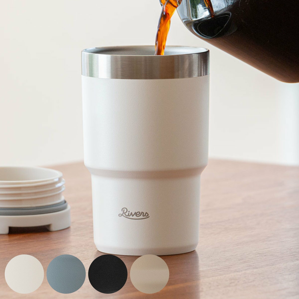 サイズ約 幅8.1×奥行8.5×高さ14.1(cm)重量約 199g容量約 300ml内容量1個付属品:フタ材質本体:ステンレス鋼フタ:ステンレス鋼、ポリプロピレン、シリコーンゴム種類ベージュ、ブラック、アッシュブルー、オフホワイト生産国中国製保温効力78度以上(1時間)、42度以上(6時間)保冷効力5度以下(1時間)、10度以下(6時間)食器洗い乾燥機部品によって使用不可電子レンジ使用不可注意事項※商品ページ内には別の商品を含む画像を使用しています区分返品・キャンセル区分(小型商品)ギフトラッピングページを見るRivers リバーズ タンブラー ウォールマグ シェイドおすすめポイント※商品ページ内には別の商品を含む画像を使用しています飲み心地抜群の真空断熱ステンレスタンブラー 300ml世界一の飲み心地を目指した、真空断熱ステンレスタンブラーです。おいしい温度帯を長くキープできる真空断熱構造なので、長時間の保温保冷が可能です。保温・保冷に優れた「ウォールマグシリーズ」ウォールマグシリーズは、RIVERSが展開する、二重構造(ダブルウォール)や真空二重構造を採用した飲み物用のマグ・タンブラーシリーズです。温かい飲み物はしっかりと保温し、冷たい飲み物は結露を抑えることで、季節を問わず快適にお使いいただけます。商品詳細2WAY 仕様で使い分け自在カップの縁を無塗装にしているため、口当たりも良く、フタを外したままの直飲みもおすすめです。フタを外せばコップとしても使えるので、直飲みやシェア、アウトドアシーンなど幅広く活躍します。心地よい飲み口設計フタの飲み口穴を可能な限り大きくし、まるでフタなしで飲んでいるかのような自然な飲み心地を実現。香りも感じやすい口設計です。軽くて丈夫、持ち歩きにぴったり軽くて割れにくいので、外出先でも安心して使えます。普段使いはもちろん、アウトドアや旅行にも気軽に持っていけるアイテムです。カラーシリーズ紹介300ml【▲このページの商品】350ml関連キーワード:テーブルコーディネート テーブルウェア キッチン用品 キッチン雑貨 雑貨 グッズ プレゼント ギフト 贈り物 自宅用 普段使い 便利 おすすめ オフィス 会社 通勤 通学 コーヒー マイタンブラー マイカップ 熱くなりにくい 持ちやすい 持ち歩き アウトドア レジャー スポーツ 行楽 無地 マット くすみカラー ニュアンスカラー 大人 LH20756 LH20752 TM013BE TM013BK TM013BL TM013WH関連商品はこちらRivers リバーズ タンブラー ウォールマ1,320円タンブラー カフェマグ 蓋付タンブラー 3001,580円タンブラー カフェマグバリスタ 蓋付タンブラー1,580円タンブラー 300ml 400ml ビタースイ1,980円?タンブラー バリスタリッチ 真空蓋付タンブラー1,580円タンブラー バリスタリッチ 真空蓋付タンブラー1,380円タンブラー 400ml ビタースイート 蓋付き1,980円タンブラー カフェマグバリスタ ストロータンブ1,680円タンブラー バリスタリッチ 真空蓋付タンブラー1,380円?HARIO フタ付き保温タンブラー300 1,680円タンブラー カフェマグバリスタ ストロータンブ1,680円?タンブラー 340ml ROCCO Octag2,530円