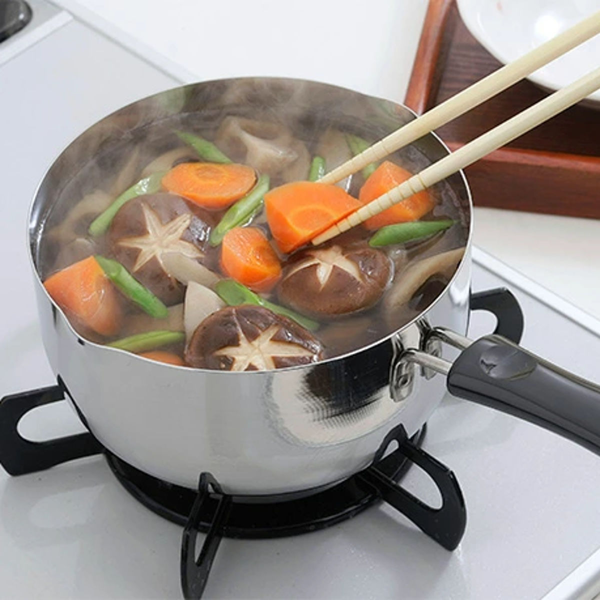 サイズ約 内径18×深さ7.5(cm)板厚:約 3.0(mm)容量満水容量:1.6LIH使用不可内容量1個材質アルミ取手:木製生産国日本製注意事項※ご家庭用は15〜24cm位が最適なサイズです。最大でも27cmが目安です。※大きいサイズのものはコンロの大きさ、コンロ周りにも気を付けてください。※酸やアルカリ性のものに弱いので極力ご使用は避けてください。※腐食の原因となりますので、食材を入れたまま1日以上保管しないでください。区分返品・キャンセル区分(小型商品)ギフトラッピングページを見る鍋・圧力鍋カテゴリから探す●純度の高い国産アルミ材を使用した極厚の雪平鍋です。●極厚の打出し加工で焦げ付きにくく丈夫で、料理がマイルドに仕上がります。●極厚のアルミ材は熱の通りのムラが無く、料理をワンランク上の仕上がりにしてくれます。●本格的なプロユースの道具でさらに美味しい料理を頂けます。●調理に便利な目盛り付きです。極厚の板厚で料理がよりマイルドに純度の高い国産アルミ材を使用した打出し極厚の雪平鍋です。極厚のアルミ材は熱ムラがありません。熱伝導も良くお湯も早く沸くので、出汁取りや茹で物など日常的にも使いやすいです。素材の厚みなど業務用に設計されているので調理しやすいです。プロ仕様のシンプルな雪平鍋はご家庭にも馴染みます。※こちらは内径18cm・容量約1.6Lの商品ページです。極厚の打出し加工で焦げ付きにくく丈夫板厚3.0mmと極厚なので熱も分散されて焦げ付きにくく具材の芯まで熱を通し、マイルドに仕上がります。さらに打出し加工によって強度が増し、表面積も広くなって熱伝導も良くなります。また、両サイドに注ぎ口が付いているので、利き手に関係なく注ぎやすいです。お味噌汁やお吸い物などを移し替える時に便利です。調理に便利な目盛り付き調理時に便利な目盛り付きです。調理容量は8分目程度が目安です。熱くなりにくい木柄ハンドルは木製なので、調理中も熱くなりません。先端にフックが付いているので、引っ掛けての収納も可能です。刻印入り中尾アルミが責任をもって製造した証である、中尾漢字の刻印入りです。細部にまでこだわりが詰まった雪平鍋です。※生産分より順次刻印付きに切り替え中のため、刻印の無い商品のお届けになる可能性もございます。予めご了承ください。調理器具は同じカタチでもアルミ製やステンレス製など色々な金属が使われており、特徴が異なります。それぞれの金属の特性を理解して、料理に合ったお鍋を選びましょう。・板厚板厚によって長所が変わる中尾アルミの製品は鍋全体の厚さが均等になっているので、熱がムラ無く伝わるのが特徴です。加熱にムラが無いので、料理が苦手な方でも上手に火を通せます。・板厚が薄い:火が伝わるのに時間がかからず水も早く沸くので、下茹でやお味噌汁作りに向いています。・板厚が厚い:強度があり焦げにくくなるので、煮込み料理などじっくり熱を加える料理にオススメです。※一般的にはフライパン・鍋の厚みは1〜2mm程度の物が多く、同社製品では1.2mm程度から5mmの物まで様々な厚みがございます。・素材アルミ:熱伝導性が良くお手入れがしやすいアルミは熱伝導率が良く、煮込み料理や茹で物など料理全般に向いています。軽くてお手入れもしやすいので使い勝手が良いです。また、アルミ自体が保護膜(黒ずみ)を作り腐食から守ろうとする性質を持っており、水や空気に触れると黒っぽく変色することもありますが害はありません。・ご使用前に:お米のとぎ汁か野菜の葉切れを水と一緒に入れて煮立ててください。・汚れがひどい場合:クレンザーなどの研磨剤の入った洗剤を適量と水を少量つけて、スチールたわしなどで磨いてください。黒ずみが落ちたら使用前の準備をもう一度行ってください。ご家庭向けにご購入をお考えの方へ・サイズは大きすぎても小さすぎても使いづらくなりますので、作る量に合わせてお選びください。・大きいサイズのものはコンロの大きさ、コンロ周りにも気を付けてください。(高さや取手の幅を考えないと周囲に当たって収まらない場合もあります。)・また50cmを超えるサイズの寸胴になりますと、設置場所までの扉や通路などでつかえてしまう場合もありますのでお気を付けください。・ご家庭用は15〜24cm位が最適なサイズです。最大でも27cmが目安です。(小さすぎるとコンロにしっかり乗らず、大きすぎても安定しない。また、火力が足らずなかなか沸騰しないなど…)シリーズ紹介15cm16.5cm18cm19.5cm21cm22.5cm24cm関連キーワード:片手なべ 万能 家庭用 日常使い 定番 丈夫 頑丈 使いやすい 飲食店 店舗 レストラン 喫茶店 居酒屋 ホテル 旅館 民宿 施設 厨房 厨房用品 厨房器具 業務用鍋 おすすめ オススメ 便利 役立つ 調理器具 調理道具 キッチン用品 台所用品 スープ 煮込み 煮物 みそ汁 味噌汁 LH4541 LH4785