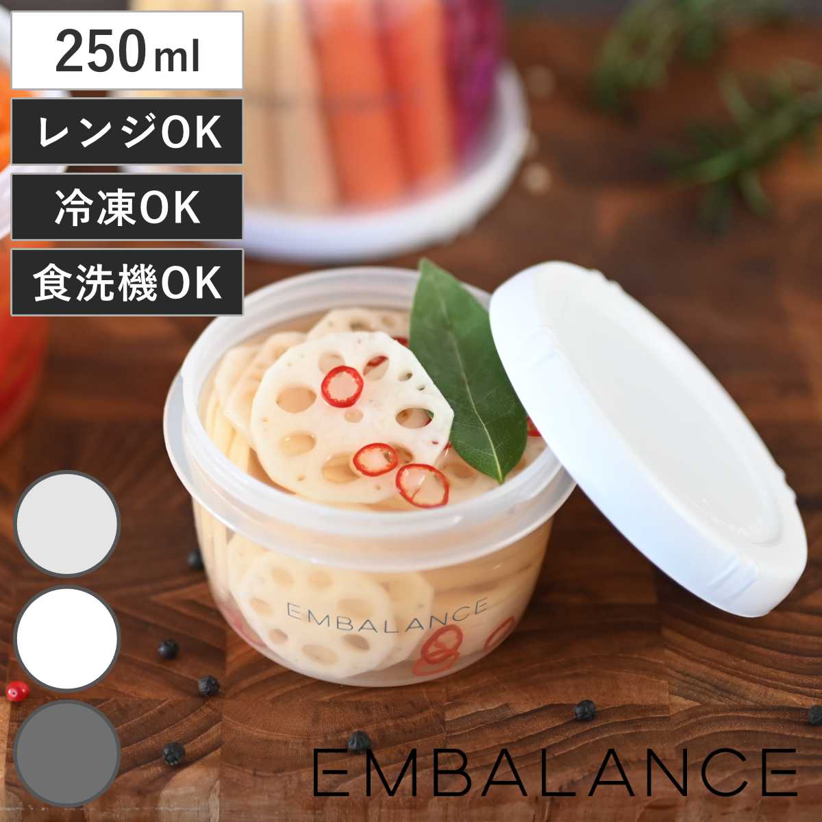 サイズ約 高さ6(cm)直径:約 9.1(cm)容量約 250ml内容量1個材質本体・フタ:ポリプロピレン(エンバランス加工)パッキン:シリコン種類クリア、ホワイト、グレー生産国ベトナム製パーツ別耐熱温度本体・フタ:140度、パッキン:140度パーツ別耐冷温度本体・フタ:-20度、パッキン:-30度食器洗い乾燥機使用可能電子レンジふたを外して使用可能オーブン使用不可注意事項※製氷を目的として使用しないでください※商品ページ内には別のサイズを含む画像を使用しています備考冷凍OKBPAフリー区分返品・キャンセル区分(小型商品)ギフトラッピングページを見るEMBALANCE 保存容器 250ml ラウンドコンテナ 丸・浅型 Sおすすめポイント※商品ページ内には別のサイズを含む画像を使用していますラウンドコンテナ 250ml丸型の保存容器、250mlです。調理の際に余った野菜を入れたり、少量のピクルス作りにもちょうどいいサイズです。小さめのミニトマトなら20個程入れられます。食材の鮮度を保持するエンバランス加工が施されており、食材を美味しいうちに使い切れて、食品ロスを減らすことができます。冷凍・フタを外して電子レンジも使用可能で保存から調理に使えます。食洗機も使用可能でお手入れが簡単なのも嬉しいポイントです。エンバランス加工とはエンバランス加工は、プラスチックに独自技術を施し、鮮度保持や発酵促進などに特化した技術です。ビスフェノールA(BPA)フタル酸エステルなどの添加剤を使用していないため、安心してお使いいただけます。また、表面にコーティングするような加工ではないため、剥がれたり、溶けだしたりすることもありません。洗って繰り返し使用ができるため、環境にも優しいです。容器に入れるだけで鮮度保持エンバランス加工の容器で保存することで、鮮度だけでなく野菜などの栄養素も保持します。余った食材やお料理などをおいしく保存、痛んで捨ててしまうことがなく食品ロスを減らせます。エンバランス加工の効果は、殺菌などにより鮮度を保持するのではなく、食品そのものを元気にさせるので安心してお使いいただけます。商品詳細パッキン付きパッキン付きで汁漏れ、ニオイ漏れに対応した気密性の高い容器です。パッキンは取り外すことができ、熱湯消毒可能で清潔にお使いいただけます。※完全密閉ではありません入れ子収納可能同シリーズの別サイズを入れ子式にでき、省スペースで収納できます。カラーシリーズ紹介薬味やスパイス、サプリメントに 130ml同色2個セット余った野菜や少量のピクルス作りに 250ml果物や一膳分のご飯に 500mlピクルス作りやお弁当箱としても 750ml関連キーワード:食洗機 電子レンジ レンジ キッチン便利 便利グッズ 生活 キッチン キッチン便利グッズ 鮮度 保持 プラスチック製 250 パッキン EM保存容器 電子レンジOK 食洗機OK 冷凍OK 便利 キッチン用品 日用品 台所用品 キッチン雑貨 発酵食品 ピクルス 薬味 おかず 作り置き 果物 乾物 プラスチック容器 おすすめ 丸形 スタッキング 弁当箱 お弁当 ランチ フードロス 食品ロス 食材ロス BPA FREE 環境ホルモン EM ウィルマックス LH15725 関連商品はこちらEMBALANCE 保存容器 750ml ラウ2,260円EMBALANCE 保存容器 500ml ラウ2,150円EMBALANCE 保存容器 ラウンドコンテナ1,375円?EMBALANCE 保存容器 1L ディープラ2,380円EMBALANCE 保存容器 1.5L ディー2,600円EMBALANCE 保存容器 ディープラウンド2,260円?EMBALANCE 保存容器 870ml レク2,210円EMBALANCE 保存容器 590ml レク1,980円EMBALANCE 保存容器 370ml レク1,210円EMBALANCE 保存容器 2.1L レクタ3,340円EMBALANCE 保存容器 920ml クリ3,000円EMBALANCE 保存容器 380ml クリ2,380円