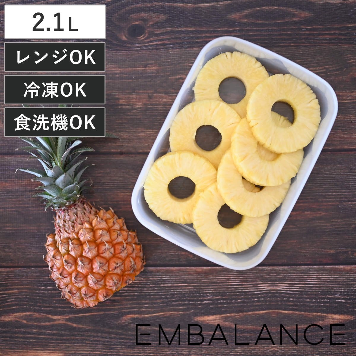 サイズ約 幅15.8×奥行22×高さ8.1(cm)重量約 202g容量約 2.1L内容量1個材質本体:ポリプロピレン(エンバランス加工)フタ:ポリエチレン(エンバランス加工)生産国日本製耐熱温度140度パーツ別耐熱温度フタ:60度耐冷温度-20度パーツ別耐冷温度フタ:-30度食器洗い乾燥機部品によって使用不可電子レンジふたを外して使用可能オーブン使用不可注意事項※商品ページ内には別の商品を含む画像を使用しています※製氷を目的として使用しないでください備考BPAフリー冷凍OK区分返品・キャンセル区分(小型商品)ギフトラッピングページを見るEMBALANCE 保存容器 2.1L レクタングルコンテナ 角型おすすめポイント※同シリーズの別商品画像も使用しています。レクタングルコンテナ 2.1L独自のエンバランス加工で中に入れた食品の劣化・腐敗を抑える保存容器です。深型タイプで塩麹漬けやぬか漬けなど、浸け置き調理にピッタリのサイズです。安心・安全なBPAフリーの容器人体への悪影響を及ぼす懸念があるBPAが入っていない、赤ちゃんの哺乳瓶にも使用される程の高い安全性を保った素材を使用しています。エンバランス加工とはエンバランス加工は、プラスチックに独自技術を施し、鮮度保持や発酵促進などに特化した技術です。ビスフェノールA(BPA)やフタル酸エステルなどの添加剤を使用していないため、安心してお使いいただけます。また、表面にコーティングするような加工ではないため、剥がれたり、溶けだしたりすることもありません。洗って繰り返し使用ができるため、環境にも優しいです。容器に入れるだけで鮮度保持エンバランス加工の容器で保存することで、鮮度だけでなく野菜などの栄養素も保持します。余った食材やお料理などをおいしく保存、痛んで捨ててしまうことがなく食品ロスを減らせます。エンバランス加工の効果は、殺菌などにより鮮度を保持するのではなく、食品そのものを元気にさせるので安心してお使いいただけます。商品詳細電子レンジ食洗機OKフタを外して電子レンジで加熱することができます。おかずを移し替えることなく温めることができるので便利です。また、食洗機にも対応しています。毎日使っても手洗いする手間がいらないので簡単にお手入れができます。スタッキング可能冷蔵庫で積み重ねてすっきり整理しやすい角型タイプです。半透明になっているので中に何が入っているか分かりやすくなっています。シリーズの容量種類が豊富なのであらゆる大きさの食材とシーンに対応できます。ご注意点※フタが柔らかいため、レンジ加熱時や食洗機使用時はフタを外して使用してください。※製氷を目的として使用しないでください。サイズ違いミニトマトなどの保存に便利370ml女性やお子様のお弁当箱にも590mlカットした野菜の保存に便利870ml大きめのお弁当箱として1270mlザル付きで使い勝手の良い深型2100ml業務用として作られた大容量5.7L関連キーワード:抗酸化素材 食洗機 電子レンジ レンジ キッチン便利 便利グッズ 生活 キッチン キッチン便利グッズ 鮮度 保持 プラスチック製 2.1 2100 電子レンジOK 食洗機OK 冷凍OK 便利 キッチン用品 日用品 台所用品 キッチン雑貨 果物 プラスチック容器 おすすめ 長方形 スタッキング フードロス 食品ロス 食材ロス BPA FREE 環境ホルモン EM ウィルマックス LH15725 関連商品はこちらEMBALANCE 保存容器 870ml レク2,210円EMBALANCE 保存容器 590ml レク1,980円EMBALANCE 保存容器 370ml レク1,210円EMBALANCE 保存容器 2.1L レクタ4,020円EMBALANCE 保存容器 1.3L クリア3,450円EMBALANCE 保存容器 2.2L クリア4,250円EMBALANCE 保存容器 920ml クリ3,000円EMBALANCE 保存容器 380ml クリ2,380円EMBALANCE 保存容器 レクタングルコン1,210円?EMBALANCE 保存容器 5.7L レクタ4,520円EMBALANCE 保存容器 クリアコンテナ 2,380円?EMBALANCE 保存容器 1L ディープラ2,380円