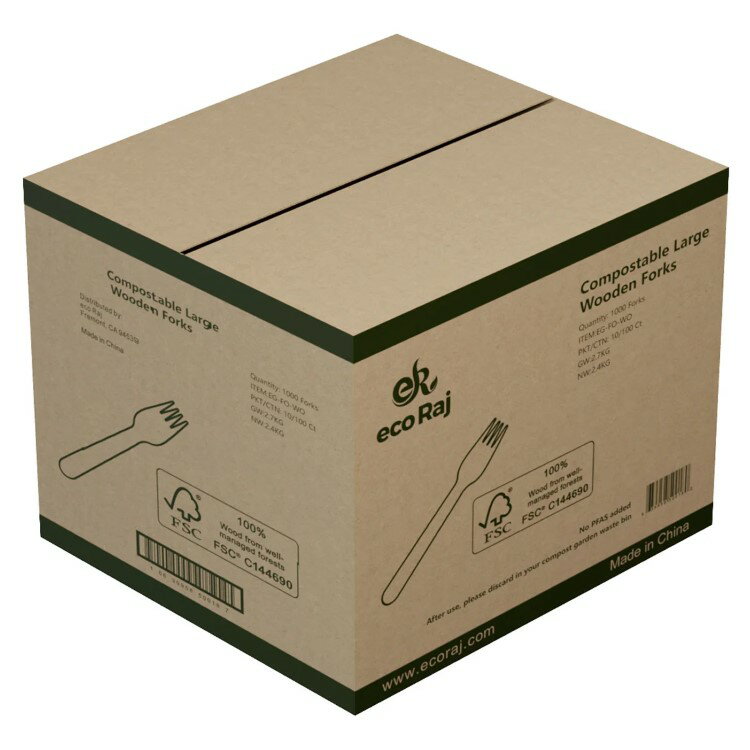 PFAS無添加 フォークの長さ: 6.3インチ 堆肥化可能 1箱あたり1000個 FSCおよびFDA認証 温かい食べ物にも冷たい食べ物にも合う 冷凍庫対応 滑らかな仕上がりのためにAグレードのバーチ材を使用 使用後はグリーンコンポスト容器に捨ててください