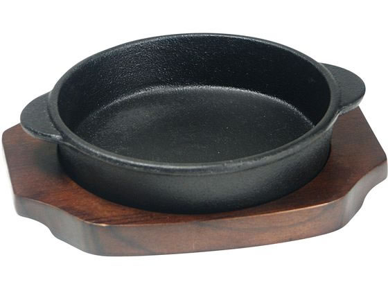 ステーキ皿 丸型 18cm ハンドル、専用木台付き ■ステーキ皿 【型番】SK-R18-HND 【サイズ】 鉄板/φ180×高さ20mm (内寸φ160mm×深さ16mm) 木台/245mm×198mm×高さ18mm 【底面サイズ】(約)φ160mm 【重さ】 鉄板/740g 木台/340g ■ステーキハンドル 【サイズ】全長137mm 【重さ】180g 【材質】本体/鉄鋳物、土台/天然木(ラバーウッド) 【ご使用前に】 ・鋳物をよく洗い水気をふき取ってください。 ・野菜屑を利用し油を入れ炒めて頂きますと油が良く馴染みます。 【ご使用上の注意】 ・使い始め数回は料理が焼き付く場合がありますが使い込むことで 油が馴染み焼き付きにくくなります。 ・ご使用前は油を薄くひいてください。 ・加熱する際はコンロの中央に置いて安定させて下さい。 ・加熱する際は中火以下でご使用下さい。 ・金属製の為電子レンジは使用できません。 ・熱した鋳物に冷水をかける等、急激な温度変化を与えないで下さい。 ・鋳物は湿気の多い場所での保管は錆の原因となります。 ・木製プレートは天然木の為付け置き洗いや、食器洗い 乾燥機はご使用できません。水洗い厳禁。 ・IH調理器具によっては底面のサイズによりご使用頂く事ができない場合がございます。 ご使用機器の取扱説明書をご確認ください。 ●訳あり5枚セットはコチラから レストランをはじめ家庭でも使える 鉄板 ステーキ皿 は直火はもちろんオーブンや IH 電磁調理器 対応 で ハンバーグ や ステーキ 、 お好み焼き でご使用頂ける他 アウトドア にも最適な グリルパンも販売中です。ロッジ Lodge のスキレットパン人気ですが弊社でも片手や両手の スキレットパン を販売しておりますのでグラタンやドリア、 アヒージョ 、 餃子 など、様々な 鉄板料理 などにも対応できます。ステーキ用の鉄板プレートは、盛り付けるだけで食卓を豪華にしてくれる便利なアイテムです。おしゃれな トキワ ステーキ皿 鉄板 鋳物フライパン を各種取り揃えております。
