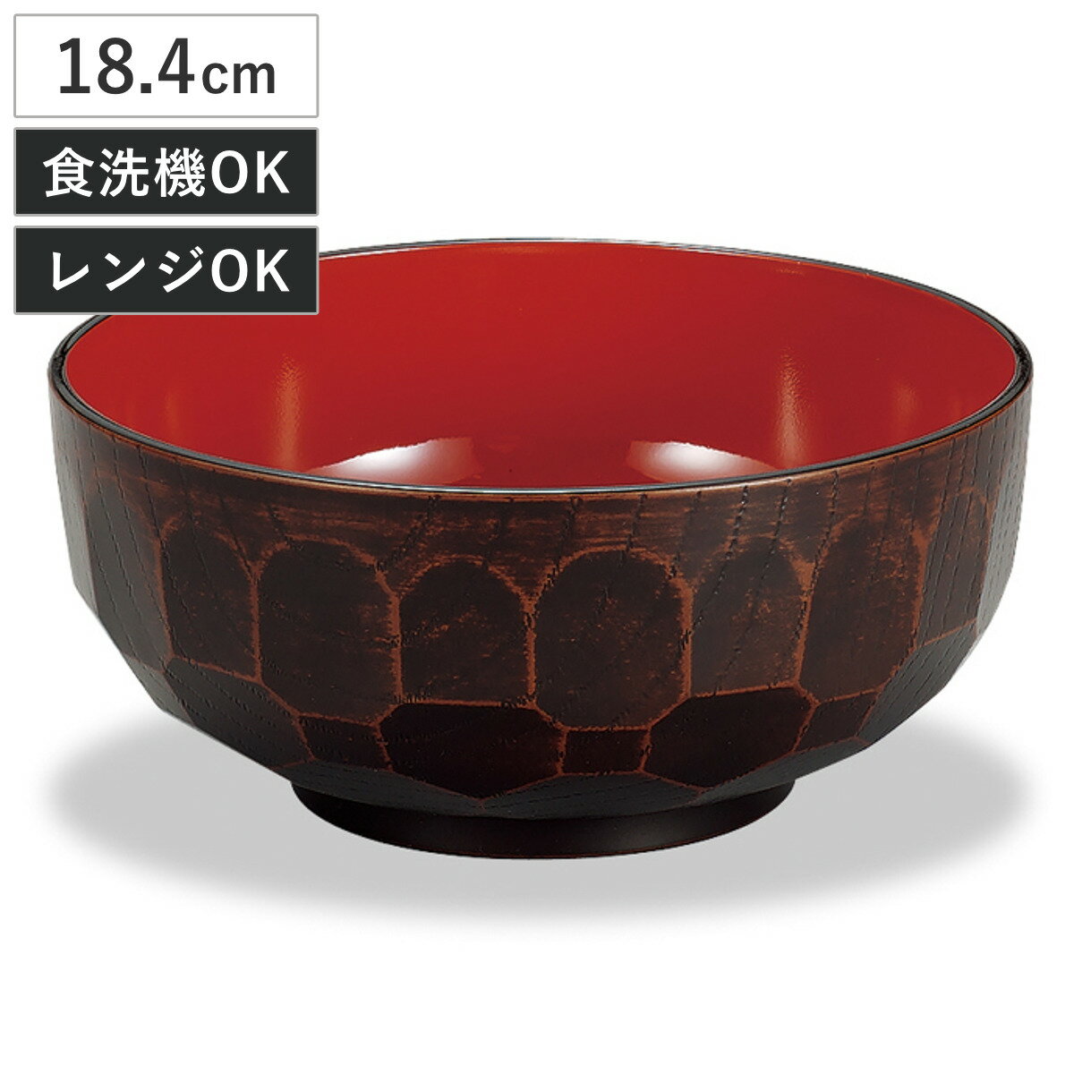 サイズ約 高さ8.3(cm)直径:約 18.4(cm)容量約 1400ml内容量1個材質PET・ABS樹脂生産国日本製耐熱温度140度耐冷温度-20度食器洗い乾燥機使用可能電子レンジ使用可能区分返品・キャンセル区分(小型商品)ギフトラッピングページを見る●樹脂製で軽くて割れにくい大椀です。●ナチュラルな木目調が魅力で、普段使いに最適です。●電子レンジ対応なので、冷めたお料理も手軽に温め直せて便利です。●食洗機対応なので、お手入れも簡単です。●安心の日本製です。おすすめポイント軽くて割れにくい亀甲大椀 栃木目 18.4cm樹脂製で軽くて割れにくい大椀です。表面には亀甲模様を思わせる細やかな凹凸があり手に馴染みます。うどんやそば、ラーメンなどの一人分の麺類にちょうど良いサイズです。商品詳細ナチュラルな木目調器の外側には木目調のデザインが施されています。食卓に馴染みやすく、温かい雰囲気に包まれるような、ぬくもりを感じられるデザインです。日常で扱いやすい、電子レンジ・食洗機対応電子レンジ対応なので、冷めたお料理も手軽に温め直せて便利です。食洗機対応なので、お手入れも簡単。毎日の食卓で気軽に使える実用的な食器です。シリーズ紹介汁椀 10.8cm汁椀 10.8cm丼 14.7cm大椀 18.4cm【▲このページの商品】関連キーワード:食洗機 対応 OK 食洗 洗える お手入れ 簡単 軽い 軽量 割れにくい 和食 和食器 和 ナチュラル 料理 使いやすい 家庭用 キッチン用品 キッチン 雑貨 食卓 テーブルウェア 日常 プレゼント ギフト 贈り物 テーブルコーディネート キッチン雑貨 グッズ 自宅用 普段使い 便利 おすすめ 山中塗 うどん 蕎麦 そば 丼ぶり LH20349 関連商品はこちら丼鉢 レンジどんぶり 亀甲栃木目 880円汁椀 レンジ食洗機対応大椀 亀甲 溜 1,100円ボウル 欅杢目ボウル 大 栃塗 1,430円麺鉢 レンジ刷毛目ラーメン鉢 溜 1,100円麺鉢 レンジ千段欅杢目麺鉢 栃塗 1,430円麺鉢 レンジ千段欅杢目麺鉢 1,100円麺鉢 レンジ麺鉢 千筋春慶 1,100円汁椀 レンジ汁椀 亀甲栃木目 660円丼鉢 レンジ布袋丼 栃塗 880円鉢 レンジ多用鉢 栃塗 1,100円どんぶり 840ml 抗菌 亀甲 木溜 食器 660円丼鉢 ラーメンどんぶり ブラウン 抗菌加工 1,430円