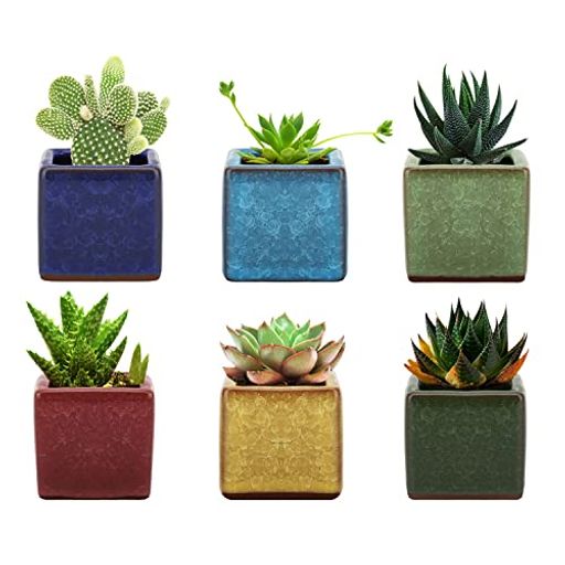 「厳選された素材採用」自然素材である粘土に釉薬で表面をコーティングしてから焼き上げられています。保湿性の良さにも繋がり、乾燥しにくく、アジアンタムやクサソテツのように多湿を好む植物に適しています。ご注意:1セットに6個入りで販売しております。セット内容は鉢のみです、植物は含まれておりません。 「排水穴付き」鉢の底面には水はけをよくする穴が開いており、過度な潅漑を防止し、通気性に優れているため。空気循環も改善できて、根腐れを防ぎることができます。植物をより健康に育てましょう。 「適用する植物サイズ」植木鉢が大きすぎる場合、植物よりも植木鉢が目立ってしまい、バランスがよくありません。植物のサイズと鉢にフィットしていれば、土の水はけが効率的に行なわれるため、2号サイズ以下の苗やミニ観葉、多肉植物、サボテンなどに適用しております。 「エレガントなデザイン」釉薬によりコーティングされて、焼きよりも見た目が鮮やかで、更に、立方体の形にし氷の割れ目も入れたデザインより、インテリアとして、玄関先や室内を植物とともに華やかに演出してくれて、洋風から和風までぴったりとマッチします。
