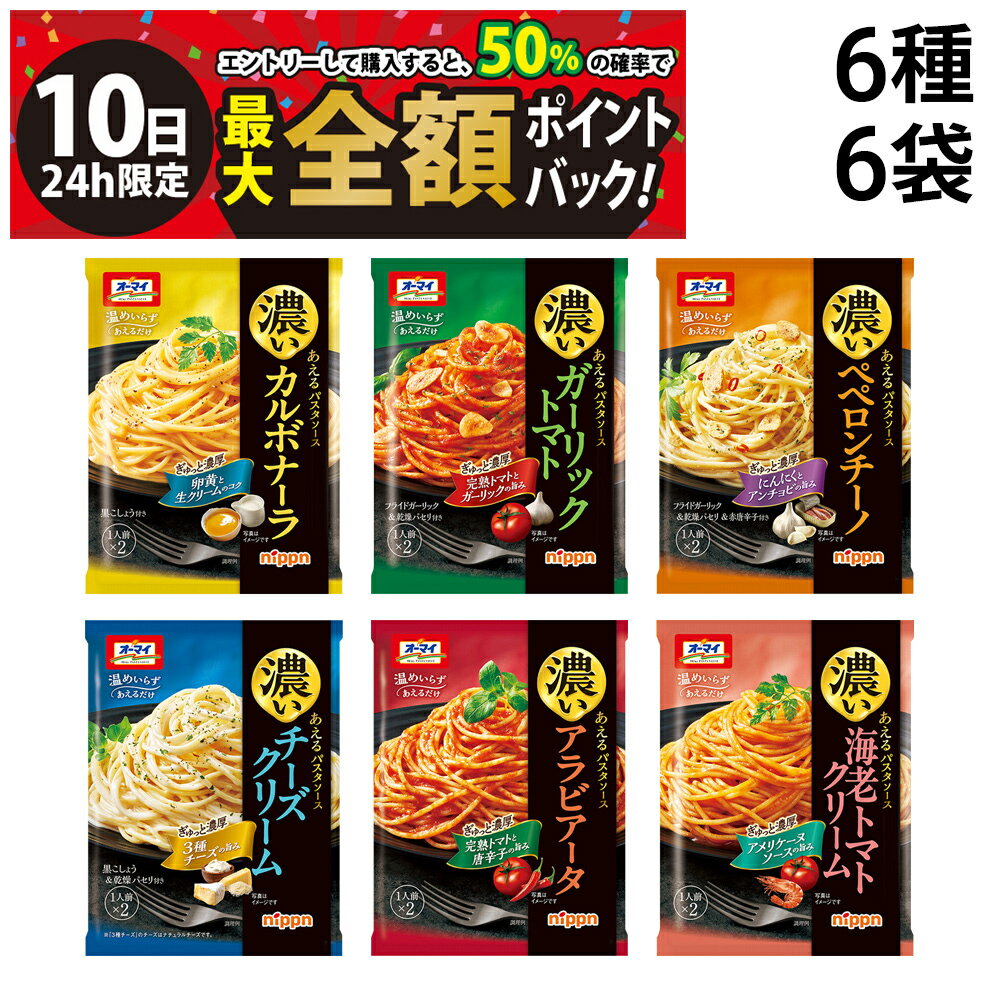 ニップン オーマイ 濃いあえるパスタソース【 6個 】アソートセットです。 ゆでたパスタにまぜるだけの簡単パスタソース。 温めずに食べられるので、バーべキューやキャンプ、登山などのアウトドアでもお楽しみいただけます。 パスタソース以外に料理の調味ソースとしてもご活用いただけます。 セット内容 ●オーマイ 濃いあえるパスタソース カルボナーラ 86g(2食入り)×1個 ●オーマイ 濃いあえるパスタソース ガーリックトマト 80g(2食入り)×1個 ●オーマイ 濃いあえるパスタソース ペペロンチーノ 49.2g(2食入り)×1個 ●オーマイ 濃いあえるパスタソース チーズクリーム 70g(2食入り)×1個 ●オーマイ 濃いあえるパスタソース アラビアータ 76g(2食入り)×1個 ●オーマイ 濃いあえるパスタソース 海老トマトクリーム 80g(2食入り)×1個 商品の説明 ●濃いあえるパスタソース カルボナーラ カルボナーラは卵黄とチーズの旨みを生クリームでなめらかにまとめました。 ●濃いあえるパスタソース ガーリックトマト ガーリックトマトは完熟トマトの旨みと香ばしいにんにくの風味が食欲をそそります。 ●濃いあえるパスタソース ペペロンチーノ ペペロンチーノは隠し味のアンチョビの旨みが濃いにんにくソースを際立てます。 ●濃いあえるパスタソース チーズクリーム チーズクリームはカマンベール、マスカルポーネ、パルメザンチーズの旨み重なるおいしさです。 ●濃いあえるパスタソース アラビアータ アラビアータは唐辛子のピリッとした辛さが完熟トマトの旨みを引き立てます。 ●濃いあえるパスタソース 海老トマトクリーム 海老トマトクリームはアメリケーヌソースとトマトの旨みが詰まったクリーミーなおいしさです。 注意事項 ※お召し上がりの際にはお手元の商品パッケージの表示内容を必ずご確認ください。 ※商品のリニューアル等により、お手元に届いた商品と原材料や内容量が異なる場合があります。 ※開封後はすぐに召し上がってください。 ※直射日光を避け、常温で保存してください ▼他のパスタソースを見る▼ カテゴリー 食品 調味料