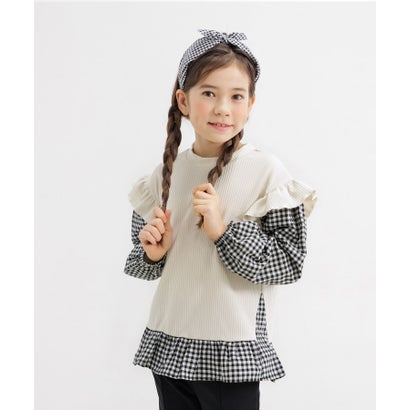 サイドリボンがポイントのレイヤード風トップス★カラバリ豊富で、肩部分のデザインが2タイプ♪合わせるボトムスはパンツでもスカートでも、おしゃれに着こなせます◎■サイズ表100cm:着丈 42 /肩幅 :31 /身幅 :33 /袖丈 :32110cm:着丈 45 /肩幅 :33 /身幅 :35 /袖丈 :35120cm:着丈 48 /肩幅 :35 /身幅 :37 /袖丈 :39130cm:着丈 51 /肩幅 :37 /身幅 :39 /袖丈 :43140cm:着丈 55 /肩幅 :39 /身幅 :41 /袖丈 :46150cm:着丈 59 /肩幅 :41 /身幅 :43 /袖丈 :50【 スタッフのお子さんに着せました! 】■Aさん子どもの体格:119cm 20kg普段のサイズ:120cm着用サイズ:120cm着用したサイズ感:ちょうどいい【 商品説明 】■素材【Nブラック×ギンガムチェック、肩フリルブラック×ギンガム、肩フリルアイボリー×ギンガム】≪本体≫ポリエステル95%、ポリウレタン5% ≪別布≫ポリエステル70%、綿30%【肩フリルベージュ×白地、肩フリルラズベリー×ホワイト、肩フリルネイビー×ホワイト、肩フリルアイボリー×ブラック、肩フリルブラック×ホワイト】≪本体≫ポリエステル95%、ポリウレタン5% ≪別布≫ポリエステル100%【その他カラー】1≪本体≫ポリエステル97%、ポリウレタン3% ≪別布≫綿100%2≪本体≫ポリエステル95%、ポリウレタン5% ≪別布≫綿100%※入荷時期により、素材・生地感が異なります。1と2の在庫が混在しておりますが、お選びいただくことはできません。2枚以上ご購入いただいた際に素材・生地感を揃えてお届けできない場合がございますが、予めご了承の上ご購入下さい。■厚み:薄手■生地感:本体は伸縮性のある生地感。異素材部分は張りのあるシャツ素材■季節感:10月~5月【 ご注意 】◆ポリエステルは毛玉ができやすい繊維です。摩擦により毛羽立ち、毛玉が生じますので、着用後はブラシなどで表面を整えてください。・商品の色味に関しましては、モニターにより若干の誤差が出る場合があります。・表記サイズは全てスタッフが平置きで計測した実寸値です。計測の仕方により実寸値とは若干(1~2cm前後 / 冬物は2~3cm)異なる場合がございます。110cm : 【着丈】45cm / 【肩幅】33cm / 【胸囲】70cm / 【袖丈】35cm120cm : 【着丈】48cm / 【肩幅】35cm / 【胸囲】74cm / 【袖丈】39cm130cm : 【着丈】51cm / 【肩幅】37cm / 【胸囲】78cm / 【袖丈】43cm140cm : 【着丈】55cm / 【肩幅】39cm / 【胸囲】82cm / 【袖丈】46cm150cm : 【着丈】59cm / 【肩幅】41cm / 【胸囲】86cm / 【袖丈】50cm別カラーはこちら! 他(チョコ×グレージュ地) グリーン(モスグリーン×グレージュ地) イエロー(マスタード×ベージュ地) ブラック(ブラック×チャコール地) グレー(グレー×アッシュラベンダー地) パープル(アッシュラベンダー×白地) ベージュ(ベージュ×白地) ブラック(ブラック×白地) ブルー(アッシュブルー×白地) ブルー(ネイビー×ダスティブルー地) グレー(チャコール×ライトグレー地) ブラック(肩フリルブラック×ホワイト) ブラック(Nブラック×ギンガムチェック) ブルー(肩フリルネイビー×ホワイト) ホワイト(肩フリルアイボリー×ブラック) パープル(パープル×白地) ピンク(ラズベリー×白地) ホワイト(アイボリー×くすみラベンダー) イエロー(マスタードイエロー×ベージュ地) グリーン(ライトグリーン×白地)