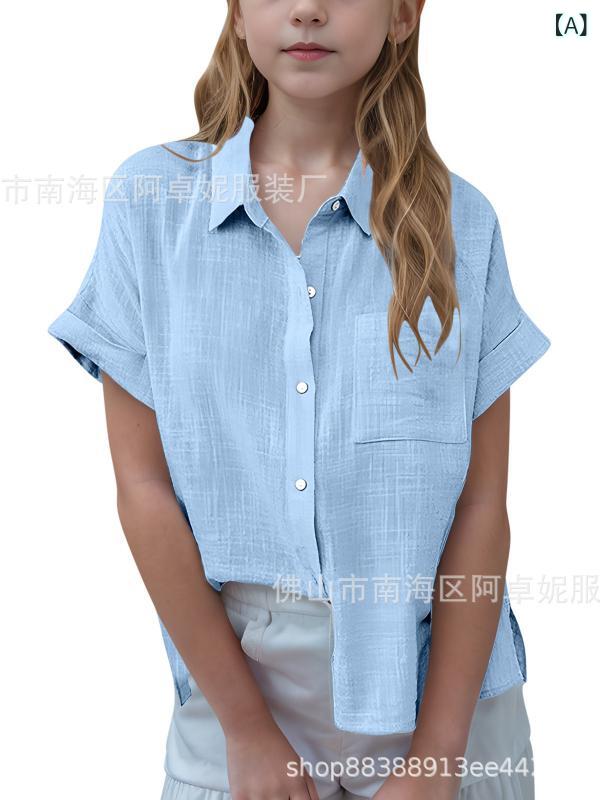 シャツ ガールズ 子供服 半袖 亜麻 リネン 無地 ゆったり 普段使い