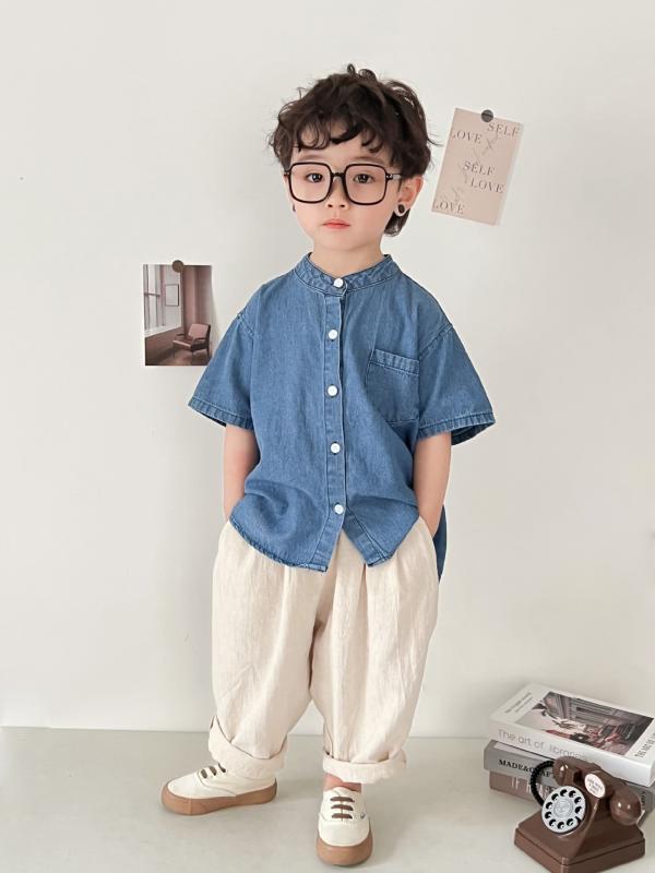 シャツ キッズ 子供 男女兼用 薄手 デニム トップス デニムシャツ ポケット付き 着やすい かわいい・スタイル: ?版・ネックライン: ??・袖丈: ?袖・主な素材: 棉・主な素材の情報を削除してください。→ 成分含有量: 95%・?用性?: 中性/男女均可・厚薄: 薄款・?案: ?色・面料工?: 柔??理,酵素洗・元素: 可?・?色: 藍色・?合身高: 80cm, 90cm, 100cm, 110cm, 120cm, 130cm・?合年?段: 中小童(3~8?,100~140cm)