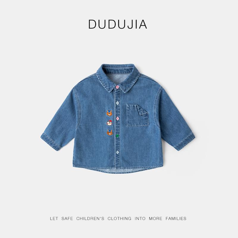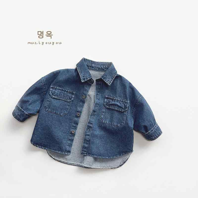 シャツ キッズ 男女兼用 子供服 薄手 デニムシャツ 長袖 トップス 韓国 かわいい 綿 春秋 ブルー 80cm 90cm 100cm 110cm 120cm 130cm