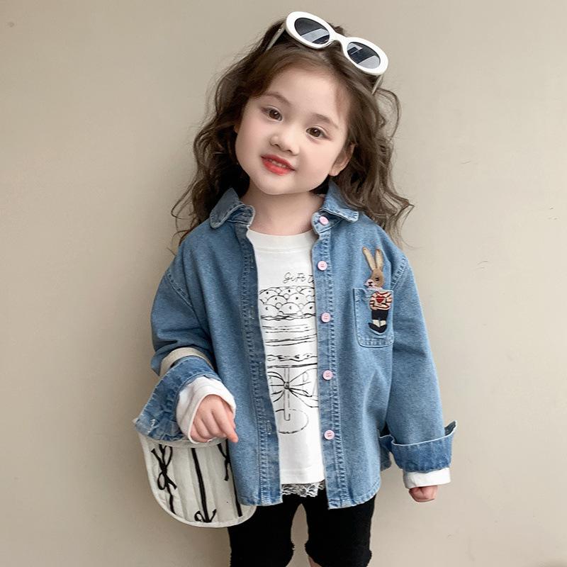シャツ キッズ デニムシャツ 長袖 子供服 春秋 トップス アウター カジュアル 百搭 かわいい 女の子 ベビー