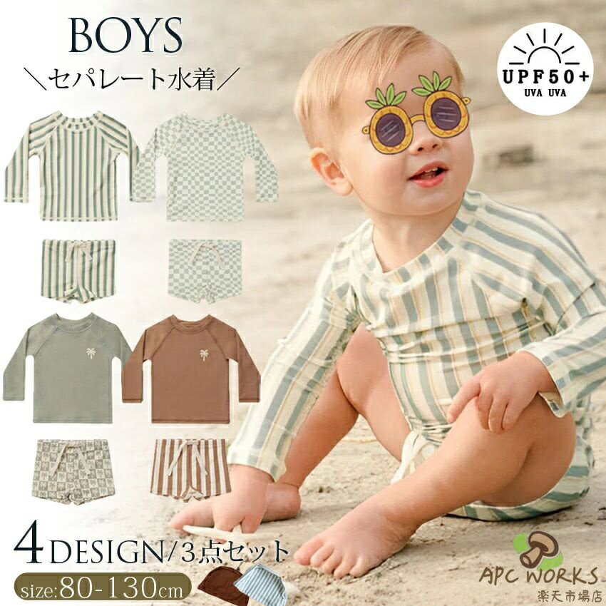 商品説明商品名こちらは、長袖のラッシュガードとハーフパンツがセットになっています。 プールや海で目立ちそうなカラーで、とってもおしゃれ。 選べる4タイプ3点セット キッズ水着 男の子女の子 海 ・川遊び・ プール・スイミングスクール 保育園用 ・お家プール 様々なシーンで、思い切り水遊びを楽しめます。 セパレートでお着替え楽々 お着替えもおトイレも自分で出来ちゃう! 優れた伸縮性でストレスなく快適な着心地に。 ポリエステル糸を使用しているので 汗をかいても乾きやすく洗濯してもすぐ乾く! 調節可能なウエスト紐付き、身体にぴったり合わせられます。 素材 ポリエステル 生産国中国サイズ 【80】 着丈31cm バスト49cm ウエスト40cm ズボン丈17cm 【90】 着丈34cm バスト52cm ウエスト42cm ズボン丈18cm 【100】 着丈37cm バスト55cm ウエスト44cm ズボン丈19cm 【110】 着丈40cm バスト59cm ウエスト46cm ズボン丈20cm 【120】 着丈44cm バスト61cm ウエスト48.5cm ズボン丈21cm 【130】 着丈48cm バスト64cm ウエスト51cm ズボン丈22cm セット内容 トップス+パンツ+キャップ 注意 PC環境・光の具合により、色や素材のイメージが写真と若干異なる場合がございます。 モデル・写真に使用されているアクセサリー・小物は別途記載が無い限り付属いたしません。 商品に不良があった場合は、商品到着から5日以内にご連絡いただければご返金・交換対応させて頂きます。 商品のサイズは、全て平置きにて外寸を測定しております。 商品によっては若干の誤差が発生してしまう場合がございます。 該当商品は他店と在庫共有です。タイミングにより、在庫ズレが生じる場合がございます。予めご了承ください。