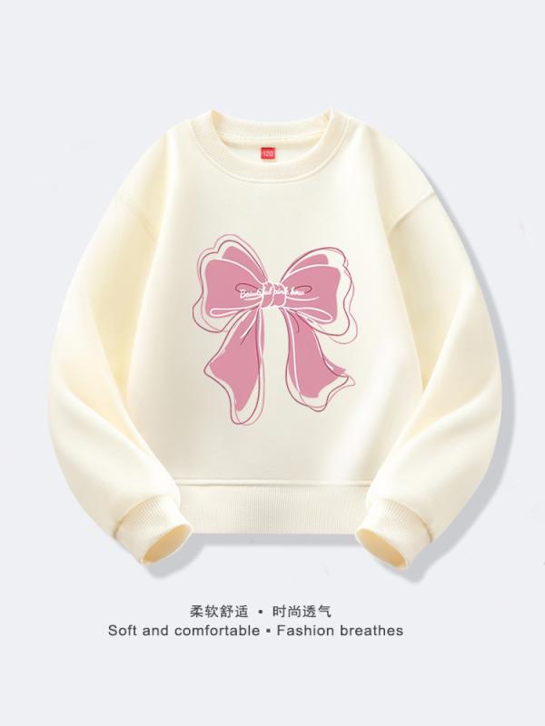 子供服 スウェットシャツ 長袖 プルオーバー 春秋 かわいい ピンク系 蝶結び ガーリー 普段使い 公園着・性別: 女・スタイル: スイート・対象年齢: 中小キッズ(3~8歳, 100~140cm)・厚さ: 普通・袖丈: 長袖・閉鎖タイプ: プルオーバー・フード: フードなし・実写画像: モデルあり・在庫: 在庫あり・要素: スポーツ, セットアップ, 漫画, かわいい, プリント, 親子, トレンド・生地名: 綿・メイン生地成分: 綿・メイン生地成分の含有量: 100%・安全レベル: B・ライニングタイプ: ポリエステル繊維ライニング・色: ベージュ, ライトグレー, ピンク, パープル, スカイブルー, ホワイト・身長: 100cm, 110cm, 120cm, 130cm, 140cm, 150cm, 160cm・カテゴリ: キッズ用スウェット