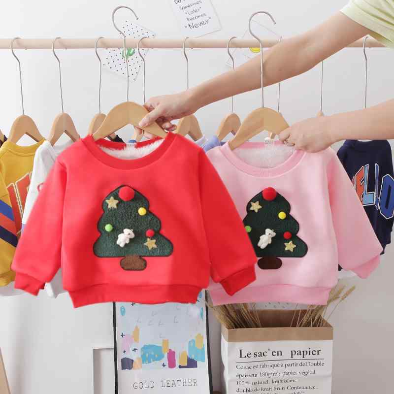 子供服 トレーナー 男の子 裏起毛 クリスマス クリスマスツリー レッド 喜慶 秋冬 トップス
