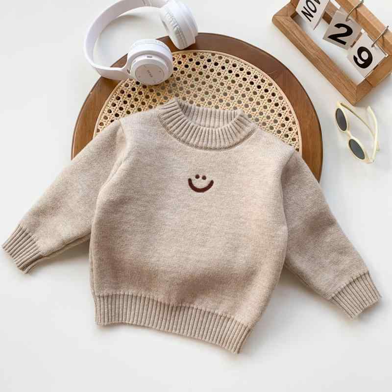 子供服 セーター 秋冬 男児 裏起毛 ニット スマイル 女児 ベビー 厚手 あったか 保温
