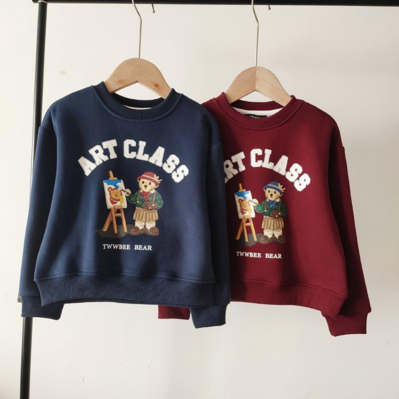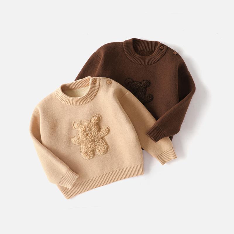 ニット キッズ 男の子 韓国 クマ柄 クルーネック 裏起毛 トレーナー 厚手 防寒 あったか 秋冬