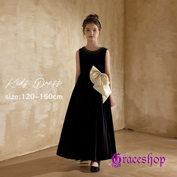 ドレス×ヘアアクセのセット購入で、お買い物上手に! 商品情報素材ポリエステル 裏地あり 伸縮性なし カラーブラック サイズ ★120 バスト:64 着丈:95 ★130 バスト:68 着丈:104 ★140 バスト:72 着丈:112 ★150 バスト:76 着丈:122 ★160 バスト:80 着丈:131 ※メーカー仕様書に基づいたサイズを掲載しております。 ※実際のサイズとは誤差が生じる場合がございますので、参考サイズとしてご覧ください。 ※1?3cmの誤差は通常の範囲内とさせていただいております。サイズ感普通>普通体型のお子様は普段とお同じサイズをオススメ致します。(お品によりブレがございますので若干の誤差が生じる場合がございます、あらかじめご了承ください。)発送について発送日:お買い物カゴに記載通り。 ※発送方法:ヤマト運輸・日本郵便・佐川急便。 ※運送会社のご指定はできかねます。 ※複数の商品を同時購入の場合は別々発送することがございます、予めご了承ください。ご注意事項☆画面上の色は、パソコンの環境やディスプレイの設定により、実物と異なる場合がございます。あらかじめご了承ください。 ☆海外からの輸入商品です。国内商品に比べて縫製が甘い場合がございます。 ☆入荷時期によっては、ドレスの色や生地、装飾品、付属品などの色や形が画像とは多少異なる場合がございます。 ☆梱包や輸送時に折りじわが付く場合がございます。お手数ですが、ご自身でアイロンをかけていただきますようお願い申し上げます。 商品の縫製及びサイズの選び方につきましては、 必ず、 こちらにて詳細をご確認のうえご注文ください。レビュー投稿で、嬉しい特典をプレゼント。 写真映えが変わる、人気ヘアアクセはこちら 当店人気商品!スパンコールティアードロングドレス ▼リンクはこちら ウエストビジューティアードロングドレス ▼リンクはこちら 星空を纏うグラデーションチュール スカート部分には、サテン生地の上にグラデーションチュールを重ね、無数の星や月のスパンコールが煌めきます。動くたびにきらめくデザインは、どの角度から見ても目を奪われます。 ベロアトップで上品な印象に トップ部分は柔らかなベロア生地を使用し、しっとりとした上品な質感が魅力。ラメのアクセントが絶妙にきらめき、特別感をさらに引き立てます。 ふんわりゴージャスなシルエット 一体型のハードパニエがスカートに動きを与え、お姫様のようなふわりとしたシルエットを実現。特別な日を華やかに演出します。 特別なシーンにぴったり ピアノやバイオリンの発表会、パーティー、結婚式のお呼ばれなど、華やかなシーンに最適。写真映えも抜群で、一生の思い出を残せます。 簡単なお手入れで長く愛用 耐久性が高く、お手入れも簡単。美しい状態を保てるので、何度でも着用いただけます。次のイベントにも心置きなくご利用いただけます。 特別な日の夢を叶える一着 このドレスは、お子さまの晴れ舞台をさらに引き立てる存在。キラキラ輝くデザインで、お子さまの自信や笑顔を引き出します。 サイズ展開で安心のフィット感 120cmから160cmのサイズ展開があり、お子さまの体型に合わせてぴったりの一着を選べます。ゆったりとした着心地も魅力です。 スタイリングの幅が広がるベルトが付属 サテン生地のベルトを結ぶことでタイトなシルエットを作り出し、洗練された印象を演出することができます。ベルトを使用しない場合は、ドレスのふんわりとしたシルエットを活かし、ゴージャス感をさらに強調できます。 お母さまへの安心設計 デザイン性だけでなく、動きやすさと安全性にも配慮。お子さまが自然に動ける設計で、安心して着用いただけます。また、背面ファスナー式で脱着も楽々。忙しい準備時間の短縮にもつながり、お母さまにも嬉しい機能です。 5