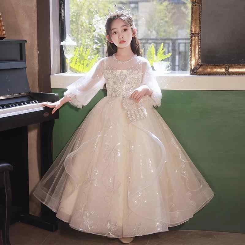 ・カテゴリ: 子供用ドレス・対象年齢: 3〜8歳(100〜140cm)・性別: 女の子・加工: 酵素洗い・要素: 可愛い・スタイル: スイート・生地: 化学繊維混紡・主素材: ポリエステル・主素材含有率: 90%・裏地素材: ポリエステル・基準: B類・タイプ: ドレス・カラー: シャンパン・サイズ展開: 110cm, 120cm, 130cm, 140cm, 150cm, 160cm