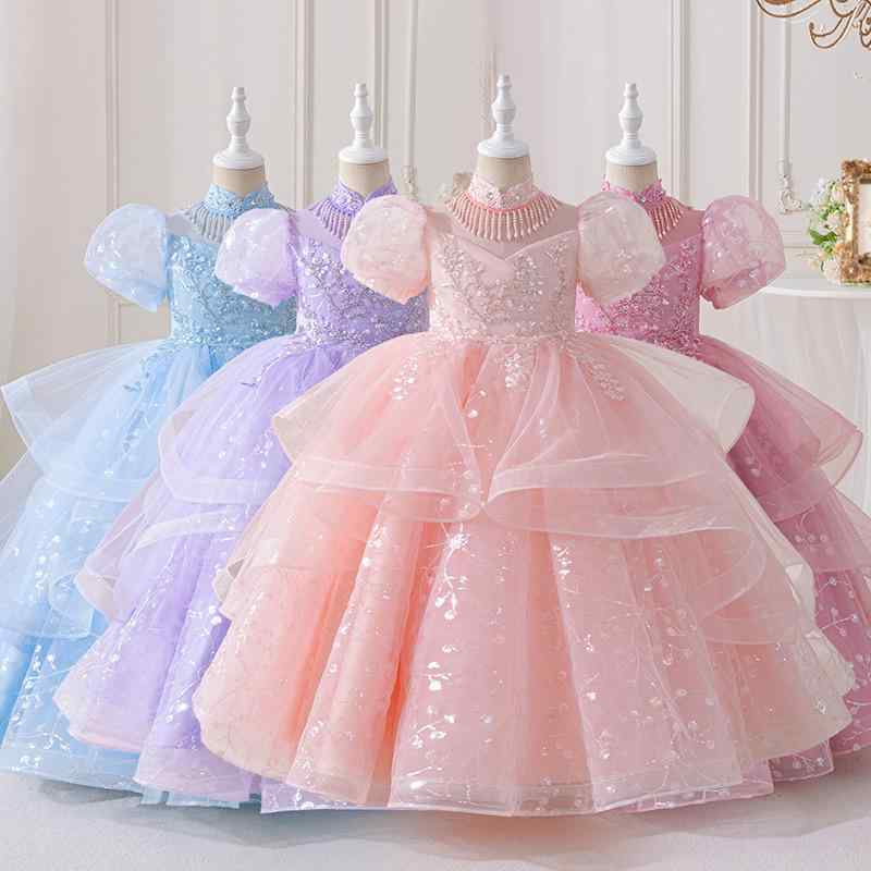 ・カテゴリ: 子供用フォーマルドレス・ドレスの種類: ?礼服・対象性別: 女の子・対象年齢: 8歳以上・スタイル: プリンセス・素材: ポリエステル・主な素材: ポリエステル95%・裏地: ポリエステル5%・要素: レース、プリンセス、トレンド、キャンディカラー・加工: シアリング・カラー展開: ブルー、あずき色、ホワイト、シャンパン、パープル、ピンク・サイズ展開: 110cm、120cm、130cm、140cm、150cm、160cm