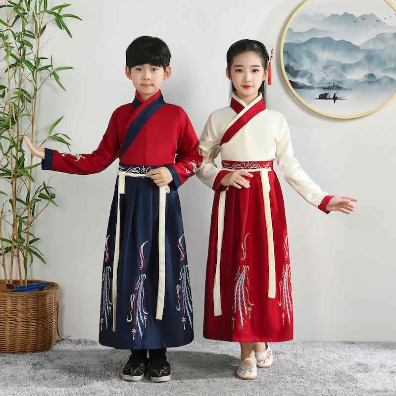 子供用 レトロ衣装 和装 漢服 国学服 男の子 女の子 発表会 小学生 三字経 書童 開筆礼 演出 衣装