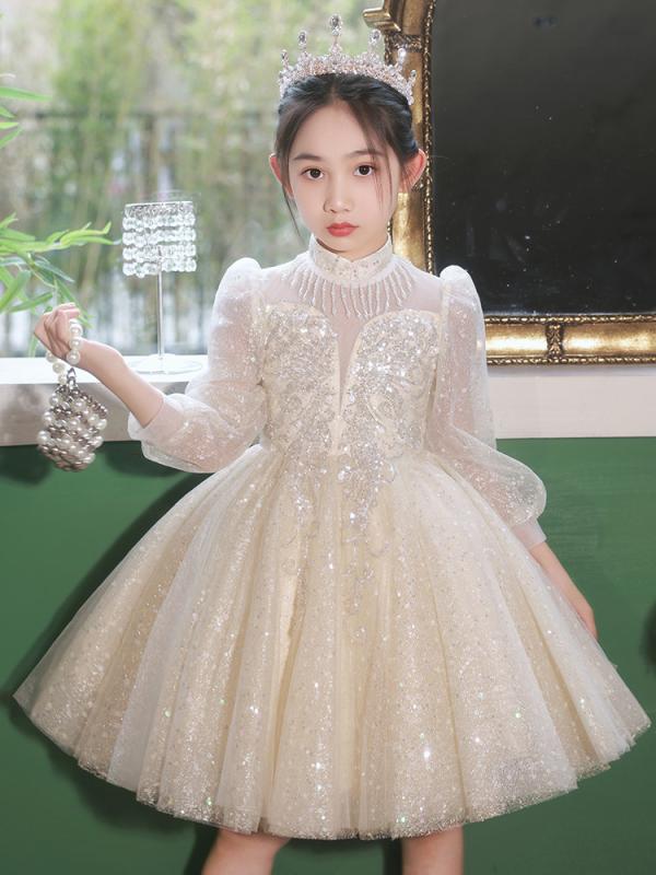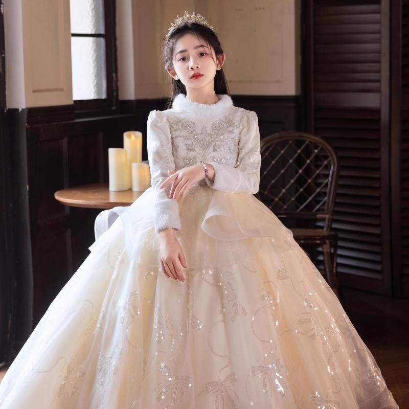 ・カテゴリ: 子供用ドレス・性別: 女の子・対象年齢: 3歳〜8歳・身長目安: 100cm〜140cm・加工: プリーツ・: プリンセス、チュール・主な素材: ポリエステル 90%-95%・裏地素材: ポリエステル・カラー展開: シャンパン(長袖)、ホワイト(長袖)、シャンパン(長袖・王冠付き)、ホワイト(長袖・王冠付き)・サイズ展開: 110cm、120cm、130cm、140cm、150cm、160cm