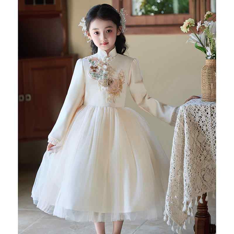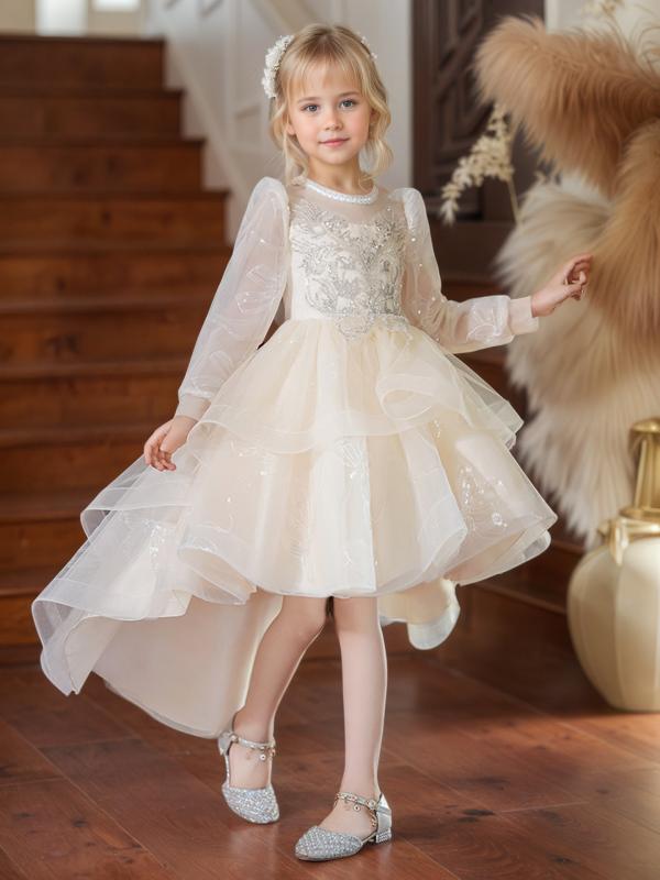 ・カテゴリ: 子供用ドレス・対象: 女の子・対象年齢: 3歳〜8歳・主な素材: ポリエステル 80%・裏地: ポリエステル 50%・要素: チュール・カラー展開: シャンパン・サイズ展開: 110cm、120cm、130cm、140cm、150cm、160cm