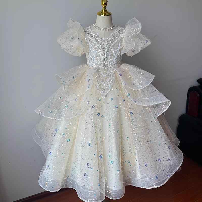 ・カテゴリ: 子供用ドレス・対象: 女の子・対象年齢: 8歳以上・加工: 酵素洗い・要素: チュール・スタイル: プリンセス・主な素材: ポリエステル 50%・裏地素材: ポリエステル 40%・基準: B類・カラー: シャンパン・サイズ: 100, 110, 120, 130, 140, 150, 160