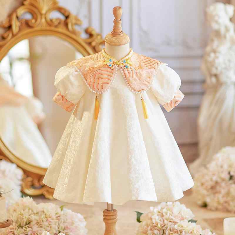 ・柄: 花柄・生地加工: 柔軟加工・デザイン要素: プリンセス・性別: 女の子・生地素材: 化学繊維混紡・主な素材: ポリエステル50%・スタイル: プリンセス・厚さ: 普通・カラー展開: シャンパンA、シャンパンB・身長展開: 100cm、110cm、120cm、130cm、140cm、150cm、160cm・デザイン: 唐装・対象年齢: 中小童(3?8歳)・カテゴリ: キッズチャイナドレス・唐装