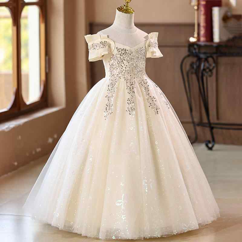 ・カテゴリ: 子供用ドレス・対象年齢: 3〜8歳・性別: 女の子・加工: プリーツ、コーティング、シアリング、酵素洗い・要素: フリル、リボン、プリント、チュール・スタイル: プリンセス・メイン素材: ポリエステル 50%・裏地素材: ポリエステル 50%・ドレスタイプ: ウェディングドレス・カラー: シャンパン・身長: 100cm, 110cm, 120cm, 130cm, 140cm, 150cm, 160cm