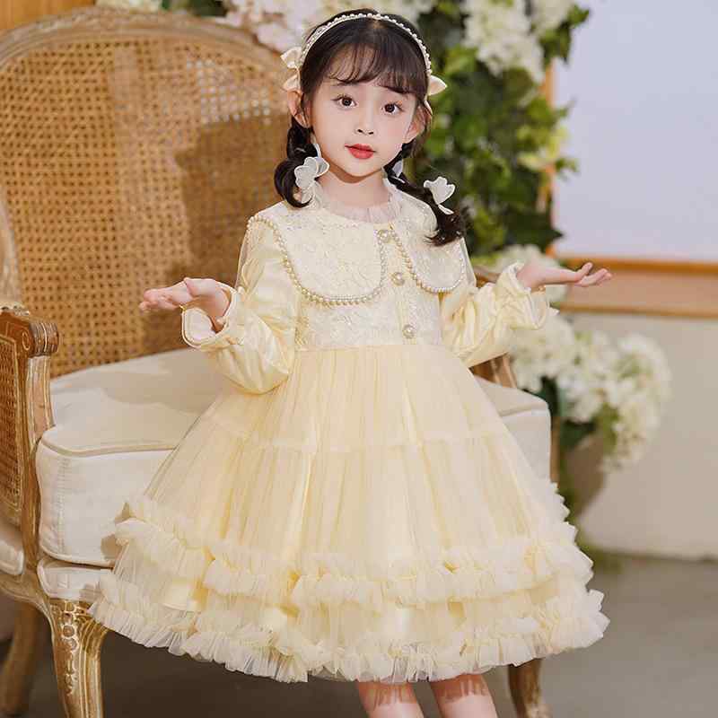 ・カテゴリ: ワンピース・スタイル: プリンセス・主な素材: ポリエステル ・裏地素材: 綿 61%・対象: 女の子・対象年齢: 8歳以上(140cm以上)・柄: 無地・ディテール: プリーツ・袖丈: 長袖・シルエット: Aライン・: かわいい・カラー展開: ホワイト、シャンパン・サイズ展開: 110cm、120cm、130cm、140cm、150cm、160cm