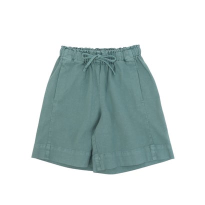 軽やかな素材感で、動きやすさを重視したハーフパンツです。ウエストにはリボンが施され、調整がしやすくデザインのアクセントにもなります。普段使いからお出かけまで幅広く活躍する一枚です。Giovanna Miletti(ジョヴァンナ・ミレッティ)が 1980 年に設立したイタリアの子供服ブランド、Il Gufo(イル・グッフォ)。現在ではヨーロッパを始め、ロシア、アメリカ、アジアなど世界中に展開しています。天然素材を使用した美しいイタリアンスタイルのアイテムを手作りで製作しています。140cm : 【ウエスト】54cm / 【ヒップ】79cm / 【股上】22cm / 【股下】20cm