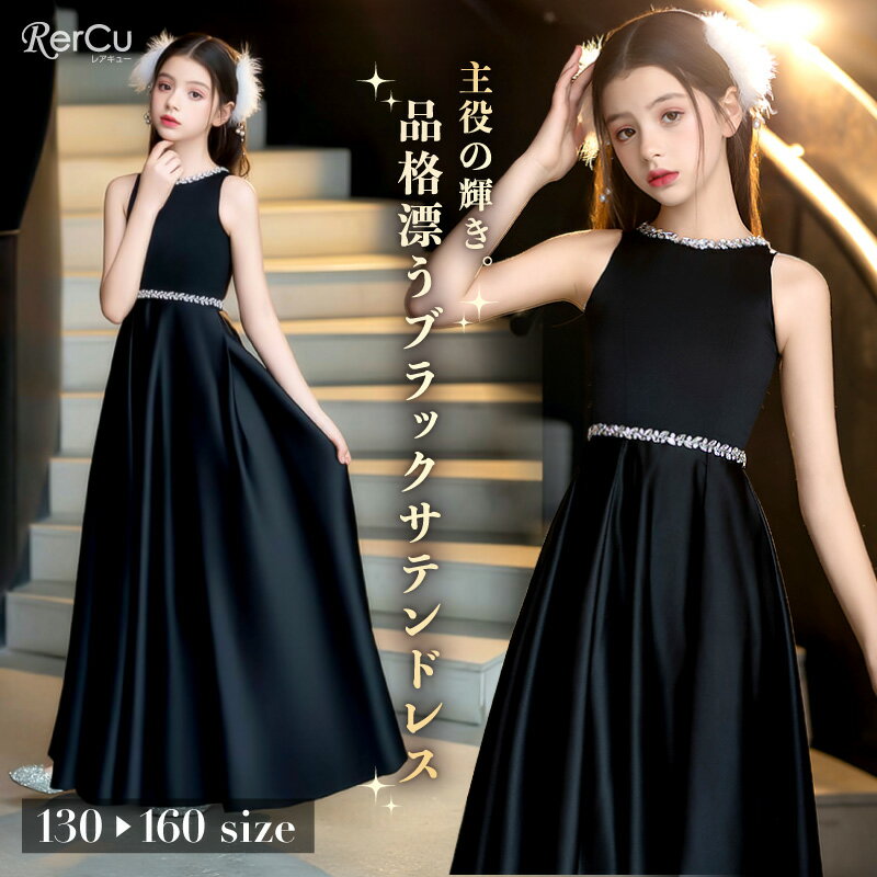 ドレス×ヘアアクセのセット購入で、お買い物上手に! 商品情報素材ポリエステル 裏地あり 伸縮性なし カラーブラック サイズ ★120 バスト:64 着丈:95 ★130 バスト:68 着丈:104 ★140 バスト:72 着丈:112 ★150 バスト:76 着丈:122 ★160 バスト:80 着丈:131 ※メーカー仕様書に基づいたサイズを掲載しております。 ※実際のサイズとは誤差が生じる場合がございますので、参考サイズとしてご覧ください。 ※1?3cmの誤差は通常の範囲内とさせていただいております。サイズ感普通>普通体型のお子様は普段とお同じサイズをオススメ致します。(お品によりブレがございますので若干の誤差が生じる場合がございます、あらかじめご了承ください。)発送について発送日:お買い物カゴに記載通り。 ※発送方法:ヤマト運輸・日本郵便・佐川急便。 ※運送会社のご指定はできかねます。 ※複数の商品を同時購入の場合は別々発送することがございます、予めご了承ください。ご注意事項☆画面上の色は、パソコンの環境やディスプレイの設定により、実物と異なる場合がございます。あらかじめご了承ください。 ☆海外からの輸入商品です。国内商品に比べて縫製が甘い場合がございます。 ☆入荷時期によっては、ドレスの色や生地、装飾品、付属品などの色や形が画像とは多少異なる場合がございます。 ☆梱包や輸送時に折りじわが付く場合がございます。お手数ですが、ご自身でアイロンをかけていただきますようお願い申し上げます。 商品の縫製及びサイズの選び方につきましては、 必ず、 こちらにて詳細をご確認のうえご注文ください。レビュー投稿で、嬉しい特典をプレゼント。 写真映えが変わる、人気ヘアアクセはこちら 当店人気商品!スパンコールティアードロングドレス ▼リンクはこちら ウエストビジューティアードロングドレス ▼リンクはこちら 星空を纏うグラデーションチュール スカート部分には、サテン生地の上にグラデーションチュールを重ね、無数の星や月のスパンコールが煌めきます。動くたびにきらめくデザインは、どの角度から見ても目を奪われます。 ベロアトップで上品な印象に トップ部分は柔らかなベロア生地を使用し、しっとりとした上品な質感が魅力。ラメのアクセントが絶妙にきらめき、特別感をさらに引き立てます。 ふんわりゴージャスなシルエット 一体型のハードパニエがスカートに動きを与え、お姫様のようなふわりとしたシルエットを実現。特別な日を華やかに演出します。 特別なシーンにぴったり ピアノやバイオリンの発表会、パーティー、結婚式のお呼ばれなど、華やかなシーンに最適。写真映えも抜群で、一生の思い出を残せます。 簡単なお手入れで長く愛用 耐久性が高く、お手入れも簡単。美しい状態を保てるので、何度でも着用いただけます。次のイベントにも心置きなくご利用いただけます。 特別な日の夢を叶える一着 このドレスは、お子さまの晴れ舞台をさらに引き立てる存在。キラキラ輝くデザインで、お子さまの自信や笑顔を引き出します。 サイズ展開で安心のフィット感 120cmから160cmのサイズ展開があり、お子さまの体型に合わせてぴったりの一着を選べます。ゆったりとした着心地も魅力です。 スタイリングの幅が広がるベルトが付属 サテン生地のベルトを結ぶことでタイトなシルエットを作り出し、洗練された印象を演出することができます。ベルトを使用しない場合は、ドレスのふんわりとしたシルエットを活かし、ゴージャス感をさらに強調できます。 お母さまへの安心設計 デザイン性だけでなく、動きやすさと安全性にも配慮。お子さまが自然に動ける設計で、安心して着用いただけます。また、背面ファスナー式で脱着も楽々。忙しい準備時間の短縮にもつながり、お母さまにも嬉しい機能です。 5