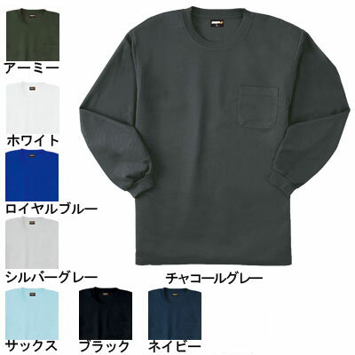 作業服 50384S〜LL3L他のサイズを選ぶ●●商品説明●関連商品※50381半袖Tシャツ(胸ポケット有り)※50383半袖Tシャツ(胸ポケット無し)※50382長袖Tシャツ(胸ポケット無し)※50384長袖Tシャツ(胸ポケット有り)●春夏用●素材/ポリエステル100%(4.4oz≒150g/平方メートル ハニカムメッシュ)●サイズ:S(胸囲/94、肩巾/42、着丈/60.5、袖丈/54)、M(胸囲/104、肩巾/45、着丈/65.5、袖丈/56)、L(胸囲/110、肩巾/48、着丈/68.5、袖丈/58)、LL(胸囲/116、肩巾/51、着丈/71.5、袖丈/60)、3L(胸囲/122、肩巾/53、着丈/74.5、袖丈/62)、4L(胸囲/128、肩巾/55、着丈/77.5、袖丈/64)●カラー:ホワイト、ネイビー、ブラック、シルバーグレー、チャコールグレー、アーミー、ロイヤルブルー、サックス商品仕様続くドライ感と、ハニカムメッシュの柔らかな着心地。オールシーズン着回せる注目アイテム。アレンジ自在の287カラー。コーディネイト商品半袖Tシャツ(胸ポケット有り)50381半袖Tシャツ(胸ポケット無し)50383長袖Tシャツ(胸ポケット無し)50382長袖Tシャツ(胸ポケット有り)50384