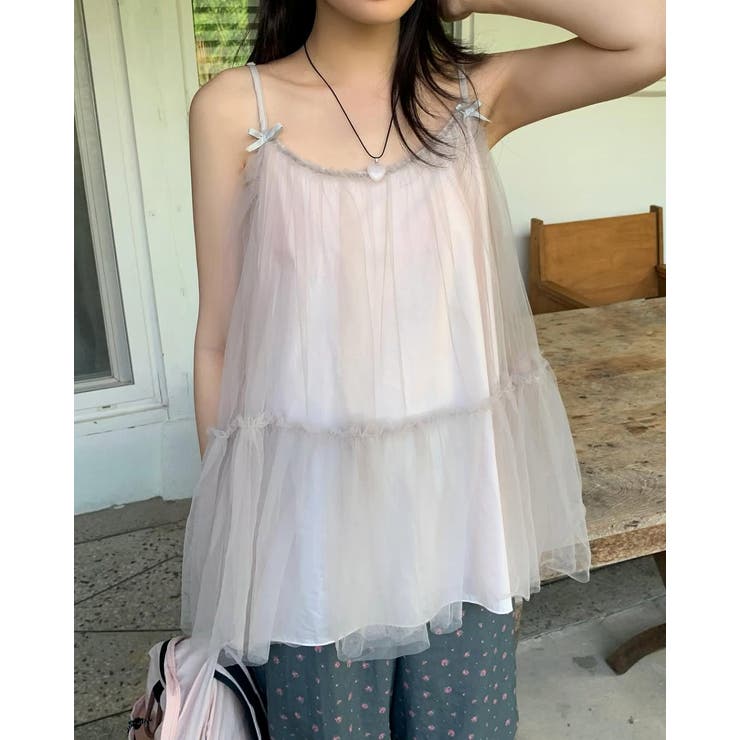 【10%OFFクーポン!1/16(金)1:59まで】aimoha フリルティアードキャミソール トップス