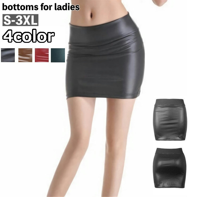 レザー調の生地がかっこいい! レディース用のミニ丈スカートです。 【サイズについて】 画像をご参照ください。 【カラーについて】 生産ロットにより柄の出方や色の濃淡が異なる場合がございます。 お使いのモニターや撮影時の光の加減などにより 画像と実際の商品のカラーが異なる場合もございます。 予告なしにカラーやデザインなどの変更がある場合もございます。 【素材について】 PU ポリエステル