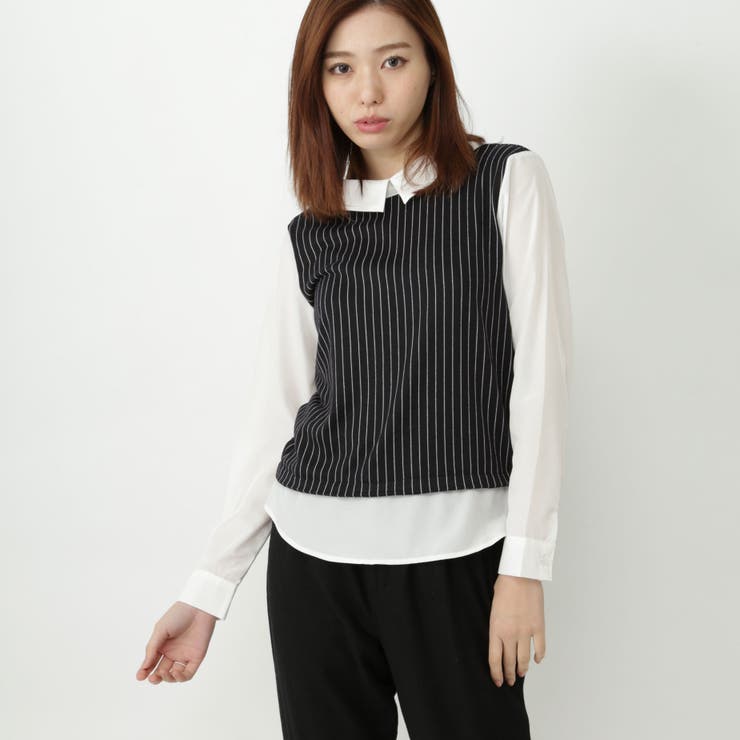 1枚でお洒落に決まるフェイクレイヤードトップス。柔らかいニットソー素材だから着心地も◎ シャツにストライプのベストを重ねたようなお得なデザインが魅力♪返品・交換について購入後の交換は受け付けておりません。予めご了承ください。返品を希望される場合は購入履歴一覧の「ショップへの問い合わせ」よりお問い合わせください。=========================複数配送先指定について1件の注文に対して、異なる住所への配送は対応出来かねます。恐れ入りますが、異なる住所へ配送をご希望の場合、配送先毎に分けて注文いただきますようお願い申し上げます。【トップスWOMEN】グリーン レッド オフ M ポリエステル 97% ポリウレタン 3% 衿・袖:ポリエステル 100% <サイズ>着丈:約59cm バスト:約92cm 肩幅:約36cm 袖丈:約56cm 裾幅:約96cm