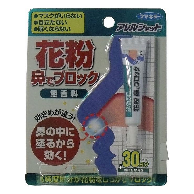 【単品2個セット】フマキラーアレルシャット花粉鼻でブロックチューブ入30日分(代引不可)【メール便(ゆうパケット)】【送料無料】