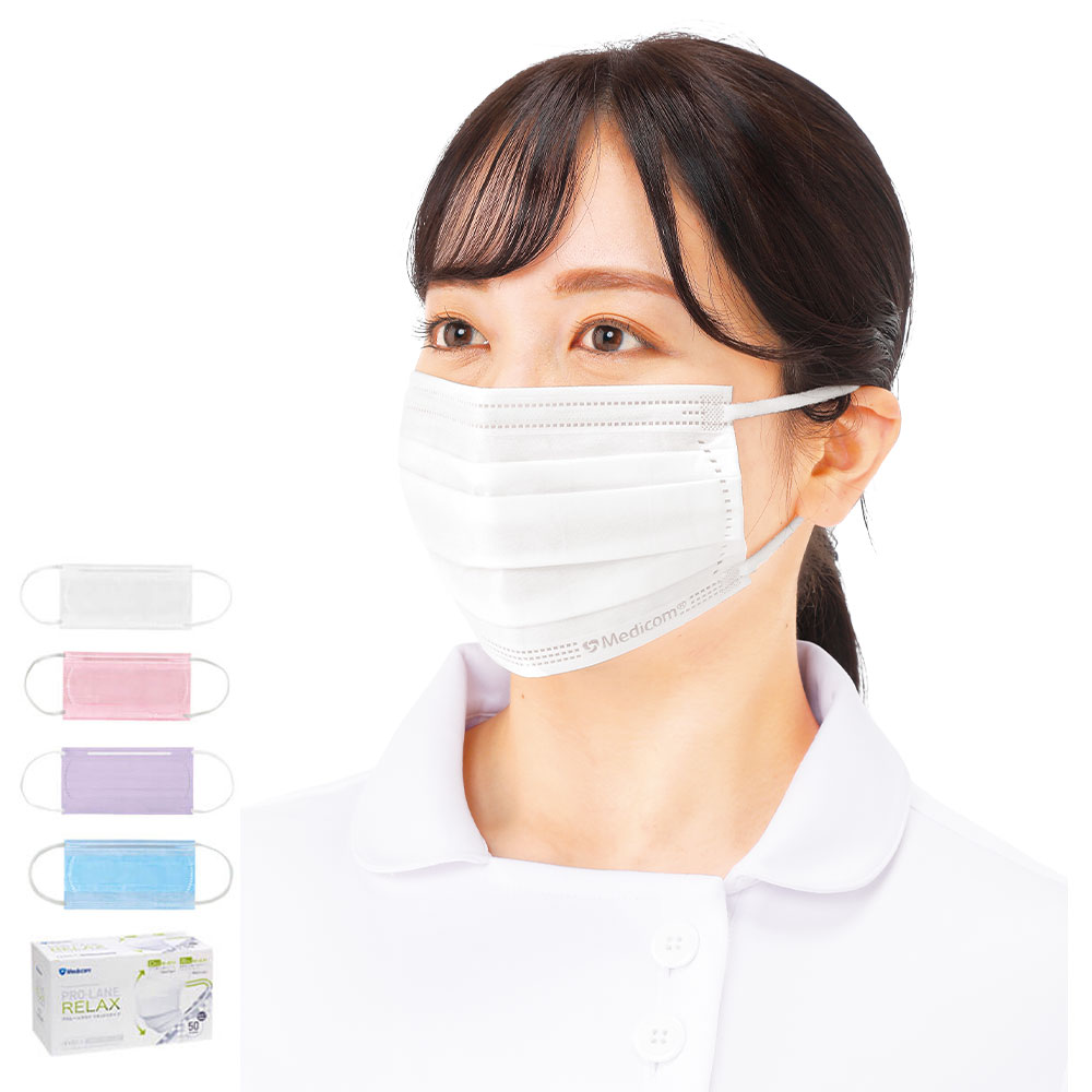 おすすめカテゴリ (1707)ふっくらとした耳ひもで痛くなりにくい快適な着け心地を追求した「リラックス」タイプのマスク マスク部分はプローレンと同じ、耳ゴム部分がふっくら太めで優しい肌あたり。さらにストレスフリーを目指した「リラックス」タイプです。 ・しっかりフィットする立体プリーツで、呼吸しやすい ・耳ひもは耳が痛くなるのを防いでくれる、ふっくら太めの平ゴム ・1箱50枚入り ※医療現場での作業性を重視し開封の手間を省いてすぐに使えるよう、フィルム包装をしない簡易包装でお届けしております。 素材 織布 サイズ(cm/約) 8.9×17.8 ●3層構造 ●1箱50枚入り ●原産国/中国 〇BFE≧98%/PFE≧98%/VFE≧98% ※BFE・PFE・VFEはメーカー実測値です。 ※素材は変わりませんが、デザインが多少変更になる場合がございます。 【ポイント】 長時間でも痛くなりにくいワイドイヤーループで耳元ゆったり 上下に開く立体プリーツで口元ゆったり 1箱50枚入り 【カラー】