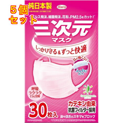 3個セット※商品リニューアル等によりパッケージ及び容量は変更となる場合があります。ご了承ください。機能性を高めた捕集フィルターを採用。捕集フィルターが、1層で空気中の微粒子(0.0001mm=0.1μm)を99%(※)カット。天然カテキン由来の抗菌フィルター「カテプロテクト?」を内蔵フィルター表面の菌の増殖を抑制します(全ての菌に効くわけではありません)。形状保持ノーズフィッター&サイドフィットフォルムが、鼻やほおのスキマを抑えます。(※):透過性試験測定値(ネルソン研究所)ふんわりと快適なつけ心地。つけ心地の良いふんわり耳ひもを採用。ふんわりタッチで、長時間つけても耳が痛くない(※)。肌ざわりやわらかな高品質不織布を使用。 口もとゆったり構造で、息苦しくなく、話し続けてもズレにくいので、長時間の使用も快適です。メガネのくもりもブロック。フォグブロックフィルムがマスク上部から生じる呼気漏れを、カバーで防ぐため、メガネがくもりにくい。(※):当社従来品比 名称 マスク 内容量 30枚 使用方法・用法及び使用上の注意 使用方法・1. 「内側inside」の文字が書かれている面が顔側です。・2. プリーツの折り目を縦に伸ばしてマスクを広げます。・3. マスク上部のノーズフィッターを鼻の形に合わせて曲げてください。・メガネがくもりにくくなります。使用上の注意・乳幼児や呼吸器に異常がある方は使用しないでください。・マスクのニオイで気分が悪くなったり、息苦しさを感じた場合は、使用を中止してください。・肌に異常がある方は、使用しないでください。・かゆみ・かぶれ等が生じた場合は直ちに使用を中止し、医師に相談してください。・火気のそばで使用しないでください。・使用する分だけ箱からマスクを取り出してください。・衛生面から一度使用したマスクは箱に戻さないでください。・本品は有毒ガス、有害粉塵に対して効果はありません。・本品は使いきりタイプですので洗って再使用はできません。衛生面から1日1枚の使用をおすすめしますが、汚れが気になる場合は取り替えてください。・マスク上部にノーズフィッターがついていますので、取り扱いに注意してください。・環境や個人差などにより、眼鏡がくもることがありますので、運戦の際などは十分に注意してください。 保管および取扱い上の注意 ・乳幼児の手の届かない所に保管してください。・高温多湿な場所での保管は避けてください。 発売元、製造元、輸入元又は販売元、消費者相談窓口 興和株式会社東京中央区日本橋本町3-4-14電話:03-3279-7755 原産国 日本 商品区分 衛生用品 広告文責 株式会社レデイ薬局 089-909-3777薬剤師:池水 信也,,