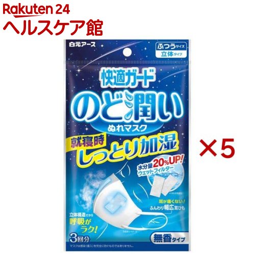 お店TOP>衛生医療>マスク>マスク全部>マスク全部>快適ガード のど潤いぬれマスク 無香タイプ ふつうサイズ マスク (3セット×5セット)【快適ガード のど潤いぬれマスク 無香タイプ ふつうサイズ マスクの商品詳細】●左右に入れたウェットフィルターがマスクの内側を加湿状態にし、乾燥したのどをうるおします。●ウェットフィルターの水分量20%アップで 蒸気放出量が20%アップ! ※●口もとに空間ができる立体構造なので、はりつきにくく、呼吸がしやすいです。●耳が痛くないふんわり幅広耳ひも。 ※※メーカー 従来品比●しなやかな不織布でつけ心地やわらか。【使用方法】(使用方法)(1)マスクを袋から1枚ずつ取り出します。(2)ウェットフィルターをアルミ袋から取り出し、マスクの内側にある左右のポケットのできるだけ奥へ1枚ずつ入れてください。(3)マスクの左右にある「◆印」を上にして、顔にあてながらひもを両耳にかけます。【保存方法】・袋を閉じて清潔な場所に保管し、早めにご使用ください。【注意事項】(使用上の注意) ・本品は有害な粉塵・ガス等を防ぐ目的には使用できません。・本品はのどを治療するもの ではありません。・乳幼児の手の届くところに置かないでください。 ・皮フに異常がある場合や、 異常があらわ れた場合には使用を中止してください。・着用中、 臭いで気分が悪くなった場合には使用を中止してください。・ウェットフィルターは使用直前に開封してください。・ウェットフィルターを触った手で目をこすらないでくだ さい。 使いきりタイプですので洗って再使用しないでください。 汚れたら新しいものと交換してください。 衛生面から1日1枚のご使用をおすすめします。・対象用途以外に使用しないでください。・自らの意思により 本品を着脱することができない方は使用しないでください。(開封後の注意)・袋を閉じて清潔な場所に保管し、早めにご使用ください。・一度使用したマスクは、 袋内に戻さないでください。・使用後は地方自治体の区分に従って捨ててください。 ・※蛍光染料は使用していません。 ウェットフィルターにパラベン配合。【原産国】中国【ブランド】快適ガード【発売元、製造元、輸入元又は販売元】白元アース※説明文は単品の内容です。リニューアルに伴い、パッケージ・内容等予告なく変更する場合がございます。予めご了承ください。・単品JAN:4902407581877白元アース110-0015 東京都台東区東上野2-21-1403-5681-7691広告文責:楽天グループ株式会社電話:050-5577-5043[マスク/ブランド:快適ガード/]