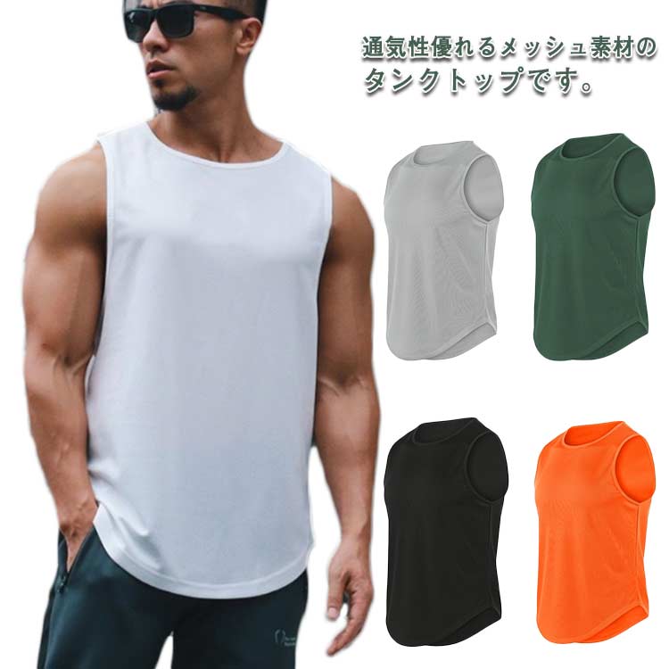 タンクトップ メンズ 男性用 スポーツウェア トレーニングウェア ノースリーブ ニット メッシュ 無地 ブラック オレンジ カーキ ブルー 運動着 大サイズ 合体型 普段使い