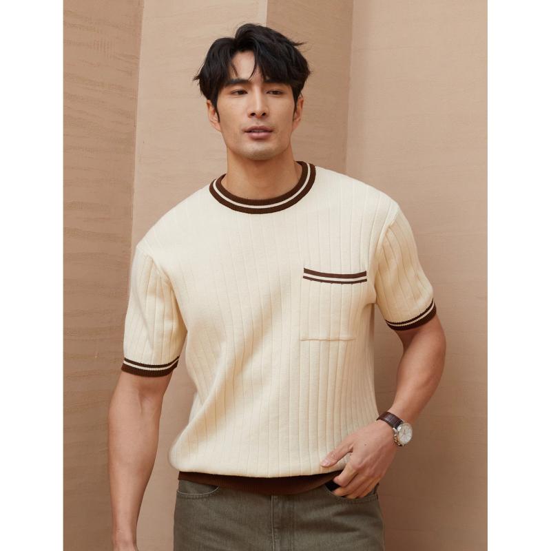 ニット メンズ 半袖 トップス ポケット付き 配色 スリムフィット ビジネス カジュアル Tシャツ スタイリッシュ 貿易